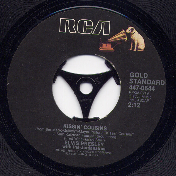 Label: RCA – 447-0644 Series: Gold Standard Series – 447-0644 Format: Vinyl, 7", 45 RPM, Reissue, Label Variation Country: US Released: 1977 Pressed By – RCA Records Pressing Plant, Indianapolis Backing Band [With] – The Jordanaires Slight Label variation to Elvis Presley - Kissin' Cousins Matrix / Runout (Side A Stamped): RPKM 0219 10 |