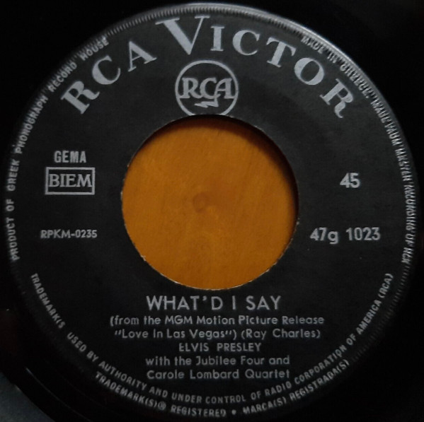 | Label: RCA Victor – 47g 1023 Format: Vinyl, 7", 45 RPM, Single, Mono Country: Greece Released: 1964 Manufactured By – Greek Phonograph
