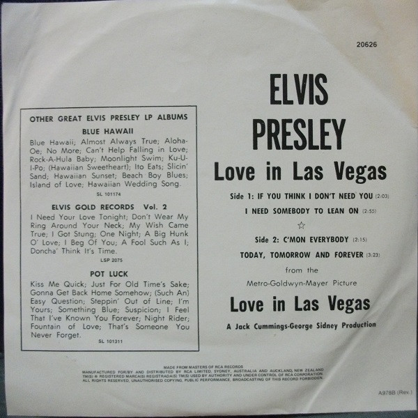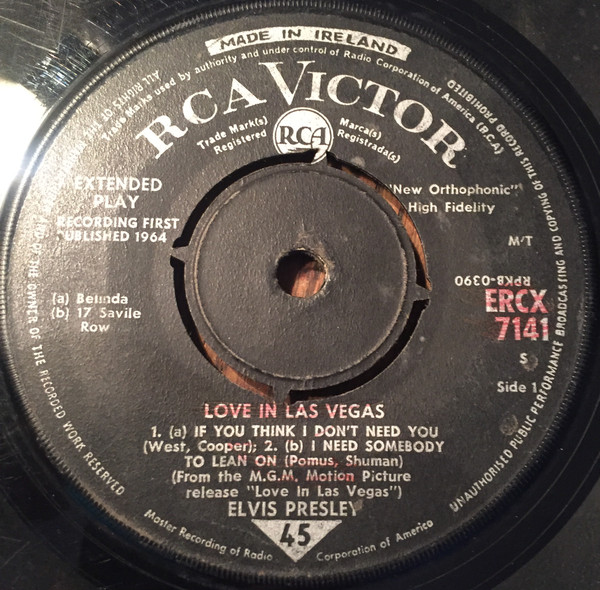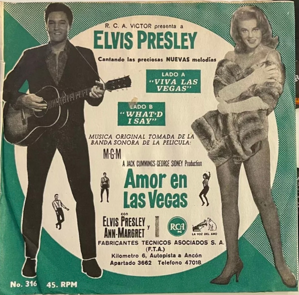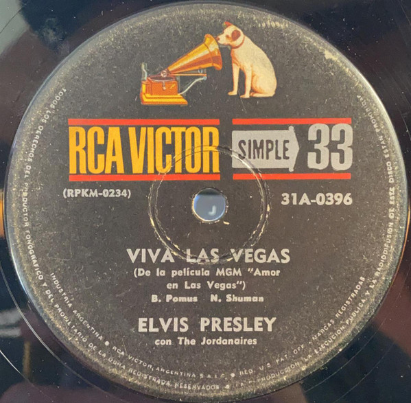 Label: RCA Victor – 31A-0396 Format: Vinyl, 7", 33 ⅓ RPM, Single Country: Argentina Record Company – RCA Victor Argentina S.A.I.C. Both sides: (from the MGM motion picture release "Amor En Las Vegas") Matrix / Runout (Side A Label): RPKM-0234 |