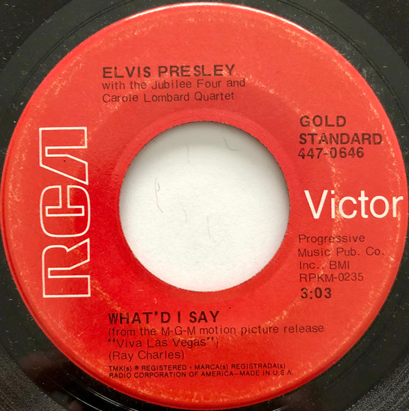 Label: RCA Victor – 447-0646 Series: Gold Standard Series Format: Vinyl, 7", 45 RPM, Single, Reissue Country: US Released: 1970 Published By – Elvis Presley Music, Inc. Reissue of RCA cat# 47-8360 Matrix / Runout (A-Side Label): RPKM-0234 |