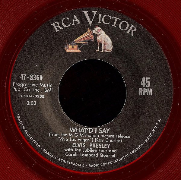| Label: RCA Victor – 47-8360, Collectables – 47-8360 Format: Vinyl, 7", 45 RPM, Reissue, Red Country: US Released: 2001 Published By – Elvis Presley Music, Inc. Reissued by RCA Victor and Collectables in 2001, in red vinyl Publishers Rights Society: BMI |