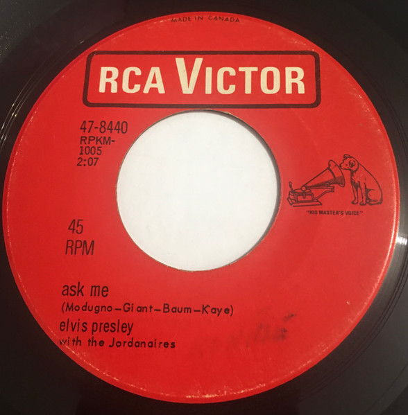 | Label: RCA Victor – 47-8440, Collectables – 47-8440 Format: Vinyl, 7", 45 RPM, Single, Reissue, Red Vinyl Country: US Released: 2001 Reissue by RCA Victor and Collectables, released in Red Vinyl Matrix / Runout (A-side label): DRE13231A |