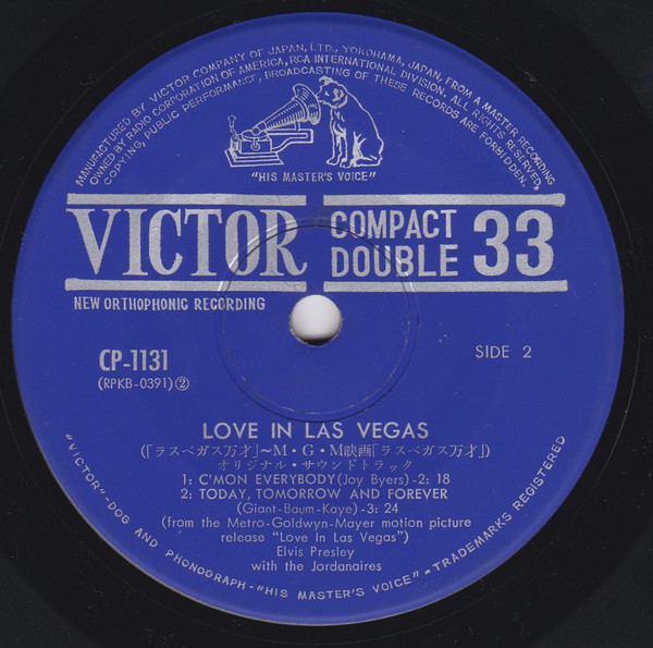 | Label: Victor – CP-1131 Series: Victor Compact Double 33 Format: Vinyl, 7", 33 ⅓ RPM, EP Country: Japan Released: Sept 1964 Manufactured By – Victor Company Of Japan, Ltd. Laminated flipback cover with English lyrics on the back. The English title of the EP, Love In Las Vegas, only appears