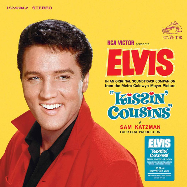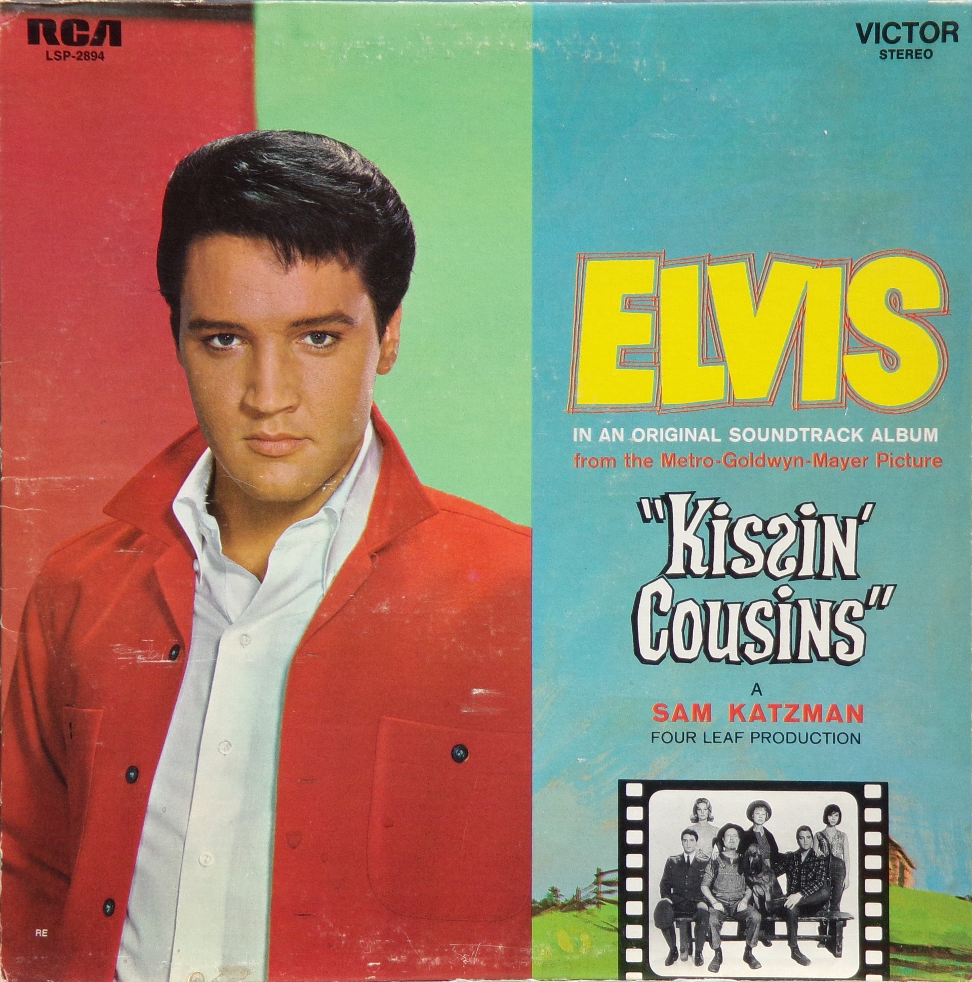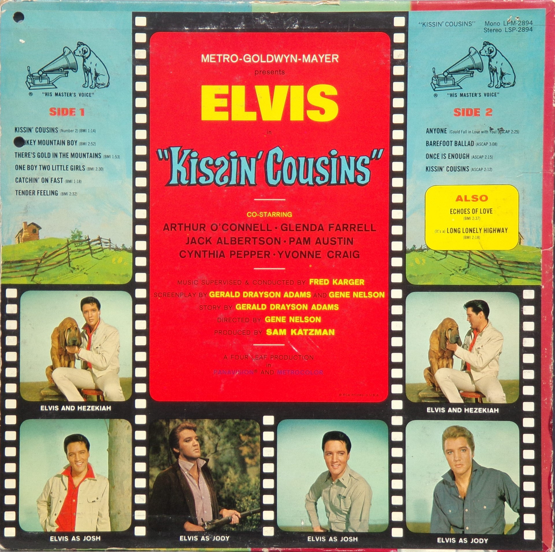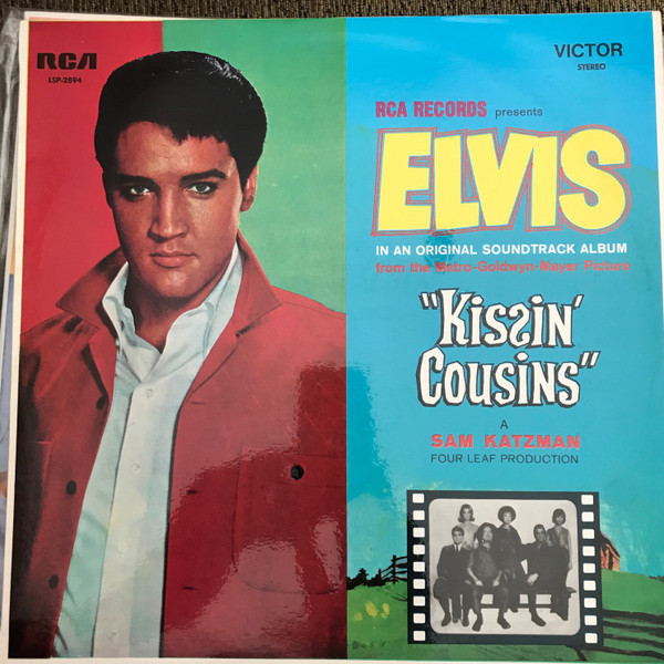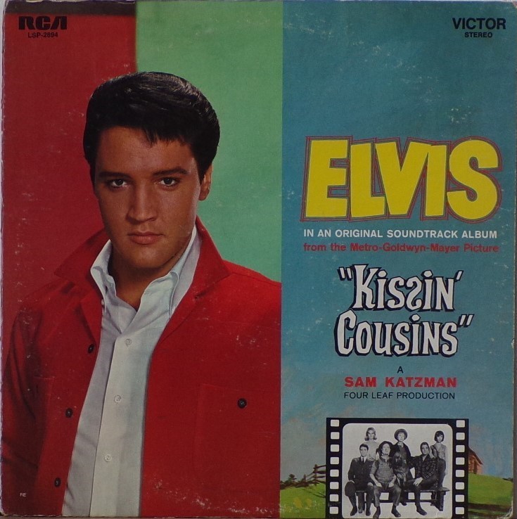 May 26, 1963 Brief History : Kissin' Cousins is the twentieth album by Elvis Presley, released on RCA Victor Records in mono and stereo, LPM/LSP 2894, in April 1964. Recording sessions took place at RCA Studio B in Nashville, Tennessee, on May 26 and 27, and September 29 and 30, 1963. These would be Presley's final recording dates before the arrival of Beatlemania. It peaked at #6 on the Billboard Top Pop Albums chart. During the same week of its release, 4 April 1964, The Beatles held twelve positions on the Billboard Hot 100 singles chart, including the top five positions. It was evident that Elvis' musical output had become stale and stagnant and directionless and the emphasis of his career was firmly committed to making musical comedy motion pictures. With the astronomical success of The Fab Four, Elvis had become, in slightly less than a decade, an icon of the past. Since the sessions for Viva Las Vegas had gone way over budget, released after but completed before Kissin' Cousins, Colonel Parker determined for fiscal prudence to have the songs recorded at Studio B, away from Hollywood and its distractions, and its platoon of available on-call musicians. Demand for songs to fill long-playing soundtrack albums, by now a regularity as the EP single was becoming less and less a viable sales item, strained the resources of the stable of Presley songwriters, with five songs alone originating from the team of Giant, Baum and Kaye. Ten soundtrack songs were knocked off by Presley with members of the Nashville A-Team during two evening sessions in September, with two distinct versions by different songwriters of the title track, one recorded in Presley's normal voice and the other with a mock-hillbilly twang. The latter version of "Kissin' Cousins" would be issued as a single in February 1964, with "It Hurts Me" on the b-side. It would peak at #12 on the Billboard Hot 100, its flipside making it independently to #29. As had happened with the previous soundtrack, two additional tracks, "Echoes of Love" and "(It's A) Long Lonely Highway" by Doc Pomus and Mort Shuman were taken from the aborted "lost" album sessions of May, 1963, and added here to bring the running order up to twelve tracks. Front Cover : Photo of Elvis. Film title on right. Catalogue