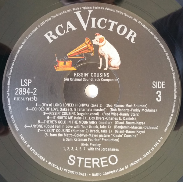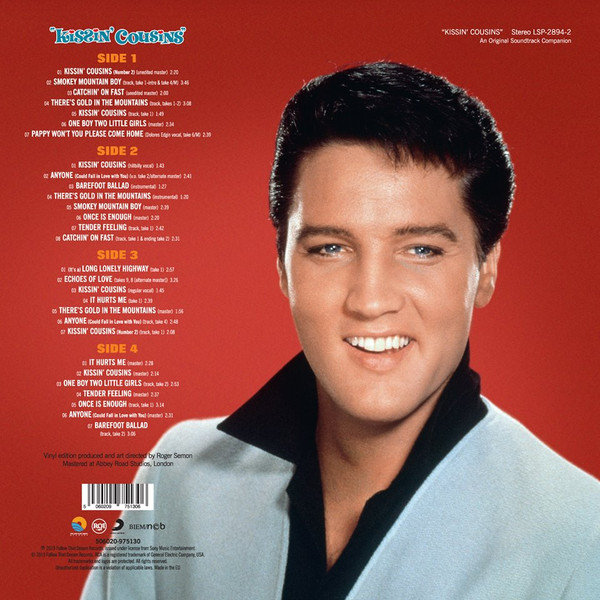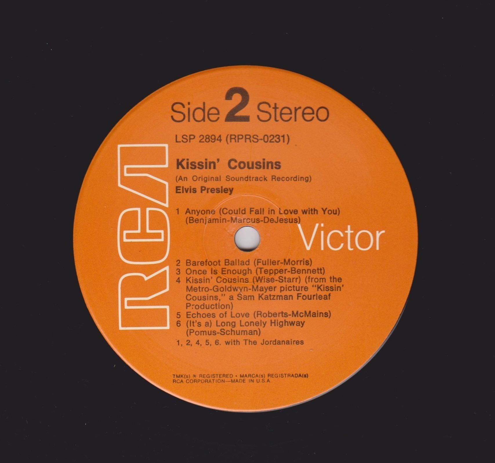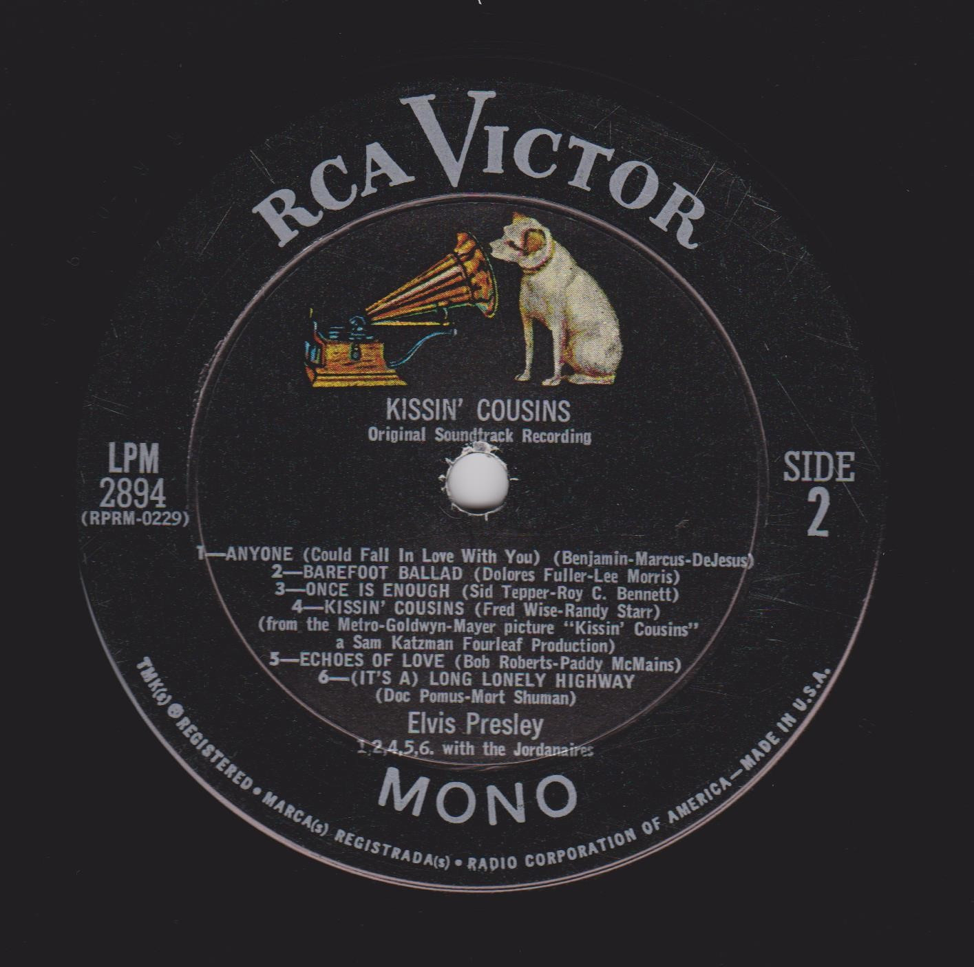 COUSINS (LP) (US) RCA LSP / LPM 2894 Released: April 1964 Side 1 Kissin' Cousins No. 2 *** Smokey Mountain Boy *** There's Gold In The Mountains *** One Boy, Two Little Girls *** Catchin' On Fast *** Tender Feeling *** Side 2 Anyone (Could Fall In Love With You) *** Barefoot Ballad *** Once Is Enough *** Kissin' Cousins 2 Bonus Songs (Not In Movie) Echoes Of Love * Long Lonely Highway ** * Recorded: RCA Studio B, Nashville,