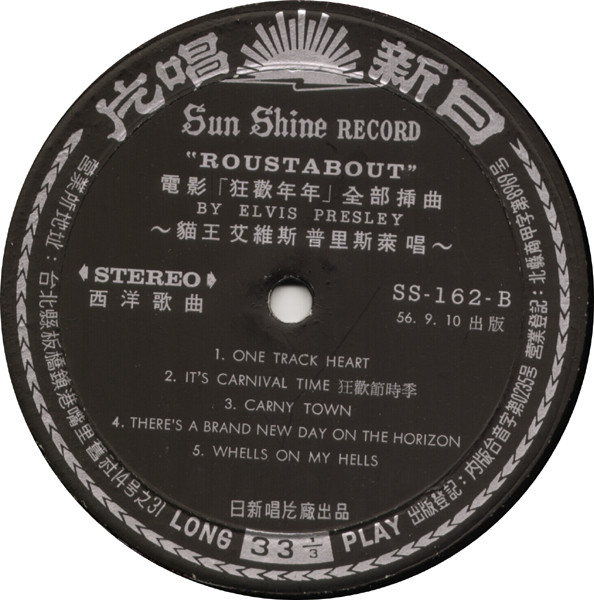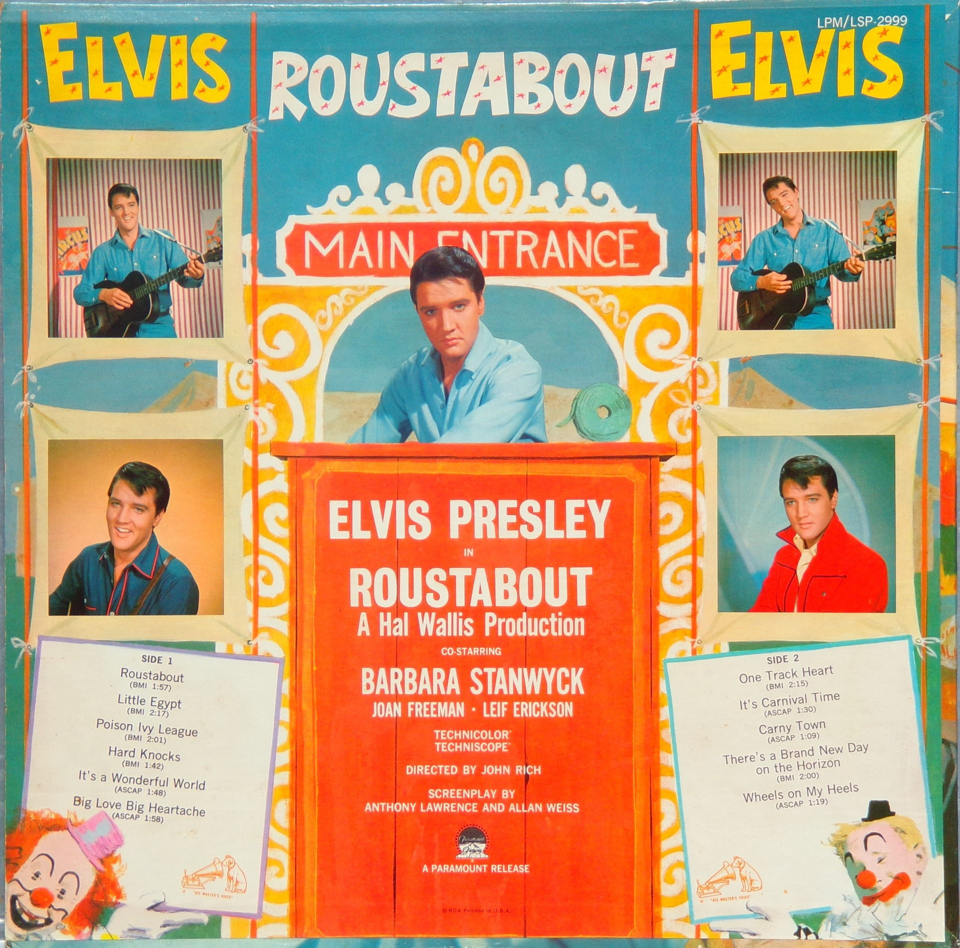 (LP) (US) RCA LSP / LPM 2999 Released: September 21, 1964 Side 1 Roustabout **** Little Egypt * Poison Ivy League * Hard Knocks * It's A Wonderful World * Big Love, Big Heartache ** Side 2 One Track Heart ** It's Carnival Time *** Carny Town ** There's A Brand New Day On The Horizon ** Wheels On My Heels ** * Recorded: