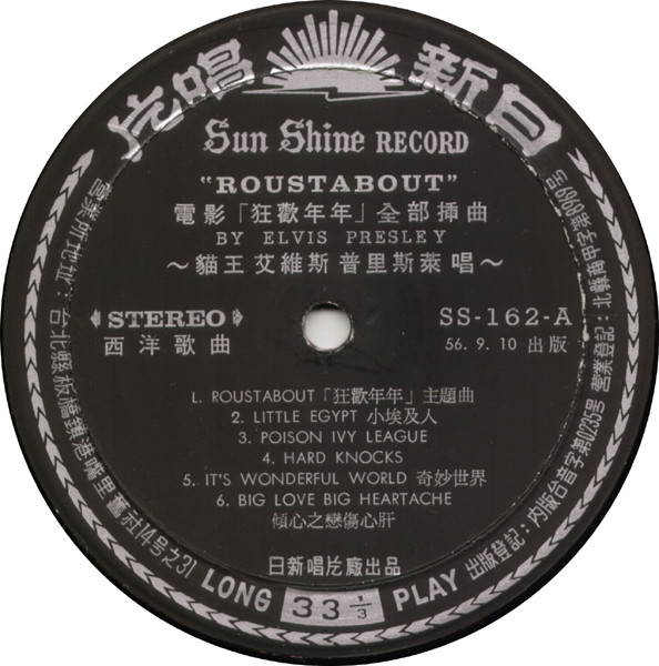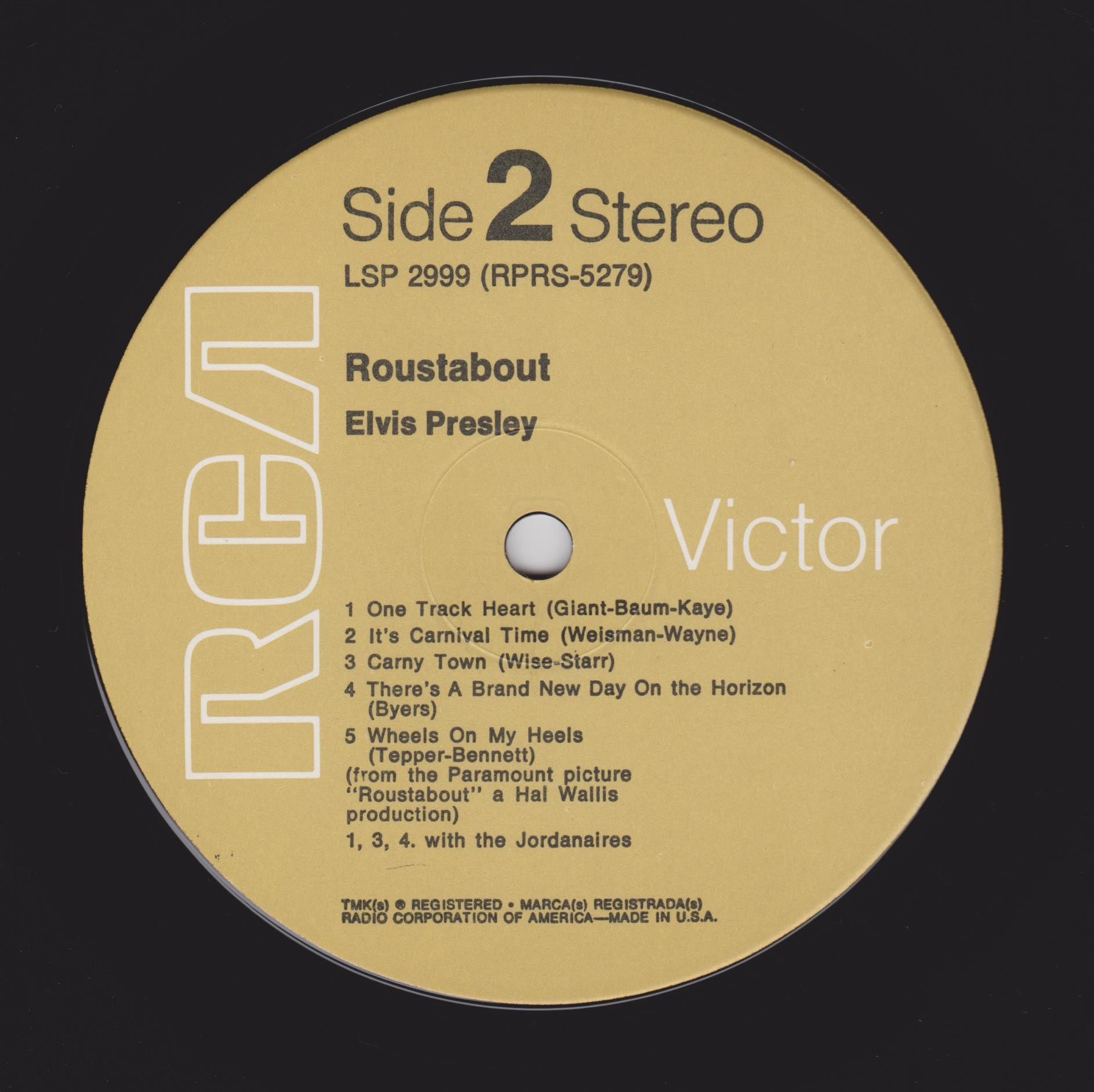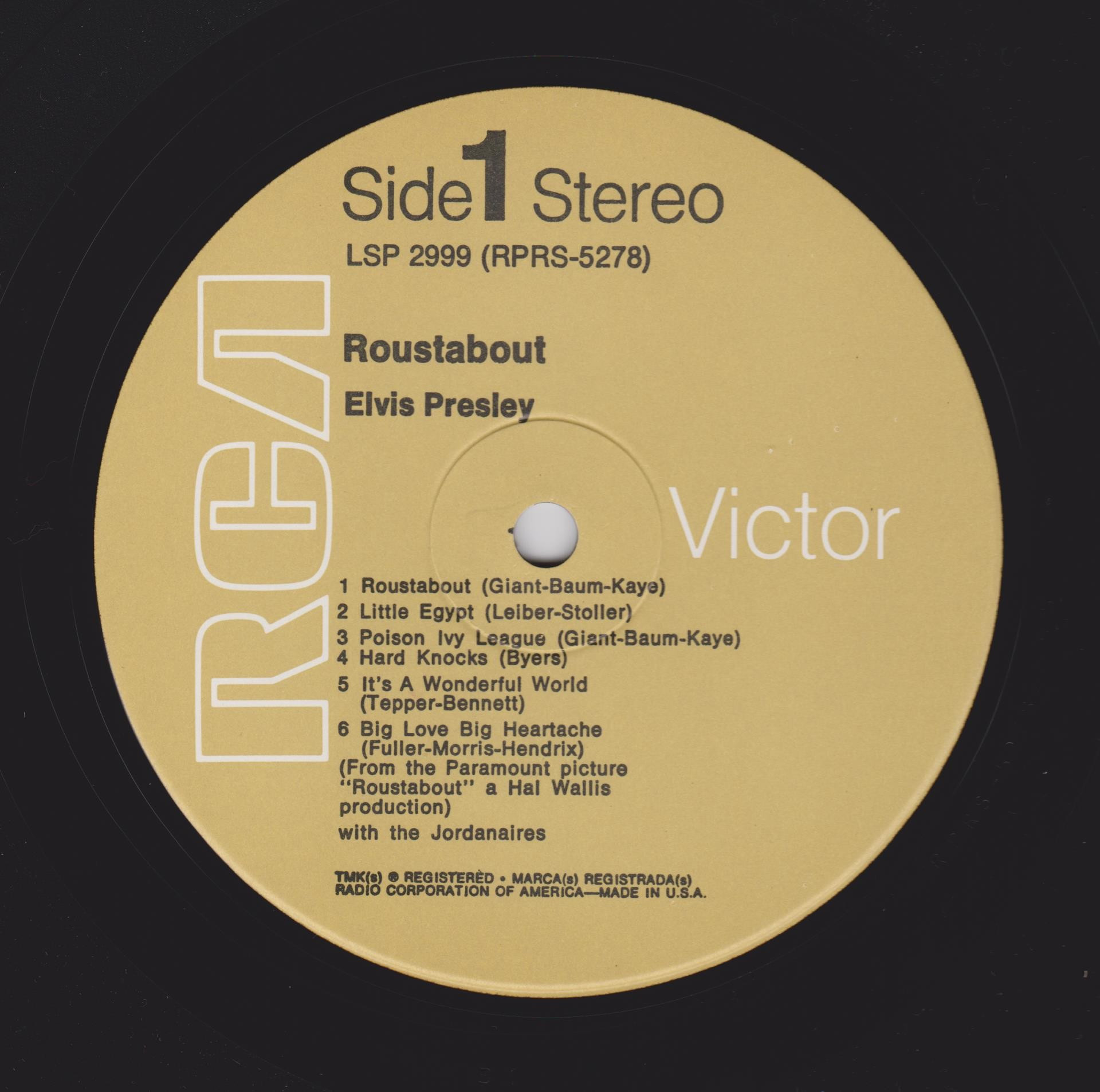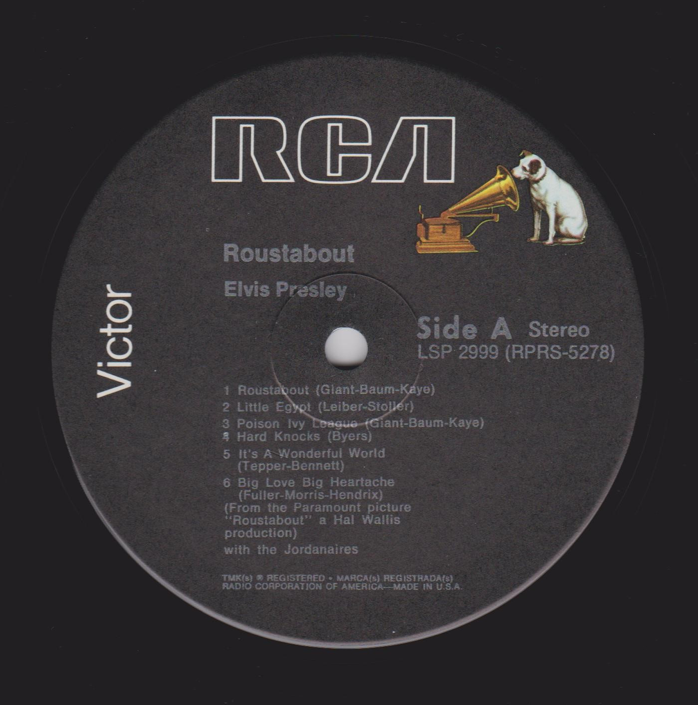 presents Roustabout (LP) Release Date: 10/1964 Disc: Blue label. From top to bottom: SP-2406 – 33 1/3 LP – PARAMOUNT PICTURES … Presents … “RUSTABOUT”