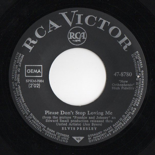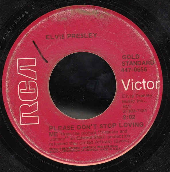 Label: RCA – 447-0656 Series: Gold Standard Series Format: Vinyl, 7", 45 RPM, Single, Reissue Country: US Released: Not Known Published By – Gladys Music Inc. – Side A Side B is listed on the Label as "(from the picture "Frankie and Johnny" an Edward Small production released thru United Artists)" Label Variant: Black Gold Standard Series label Matrix / Runout (Side A , Label Printed): SPKM-7378 |