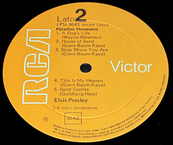 | Label: RCA Victor – LPM-3643 Format: Vinyl, LP, Album, Reissue, Mono Country: Italy Released: Nov 1970 Manufactured By – RCA Records Factory,