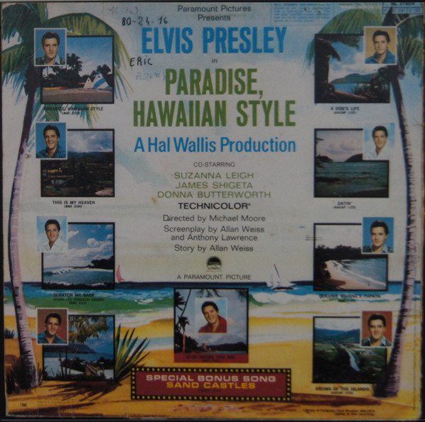 | Label: RCA Victor – NL 37804 Format: Vinyl, LP, Album, Reissue, Stereo Country: UK & Europe Released: 1983 RCA Victor presents ELVIS in the Original Soundtrack Album From The Paramount Picture "Paradise, Hawaiian Style". A Hal Wallis Production B5 - Sand Castles is a special bonus song. |