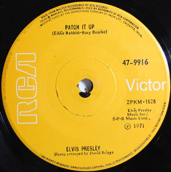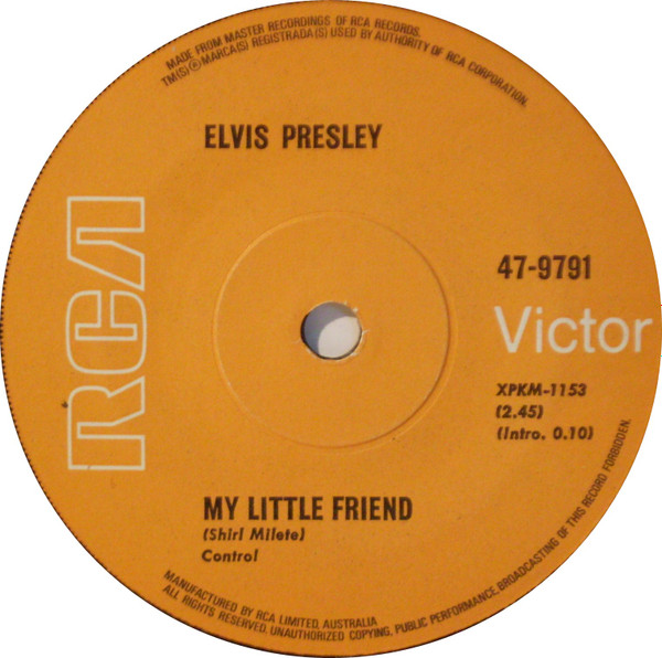 | Label: RCA Victor – 47-9791, RCA – 47-9791 Format: Vinyl, 7", 45 RPM, Single Country: India Released: 1970 Manufactured By – The Gramophone Company Of India Ltd. Side A : Elvis Presley Music Inc. / S-P-R Music Corp. Label is RCA Victor on the labels, Matrix / Runout (Label A): XPKM-1271 |