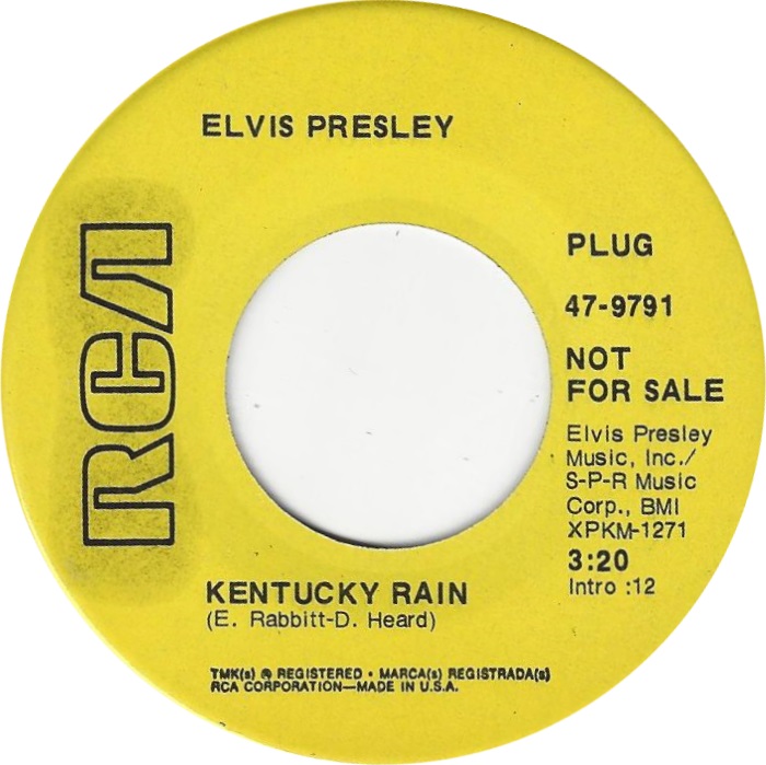 Kentucky Rain ** Catalogue Number : RCA 47 - 9791 Side XPKM 1271 : Kentucky Rain Front Cover : Picture Sleeve. |