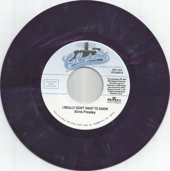 Label: Collectables – COL80020, Collectables – DRE11953 Series: Back To Back Hit Series Format: Vinyl, 7", 45 RPM, Single, Reissue, Marbled Purple Vinyl Country: US. Released: 1997 Phonographic Copyright ℗ – BMG Special Products Marbled purple vinyl. Copyright 1997 BMG Special Products Matrix / Runout (Side A runout, etched): DRE 13230-A |