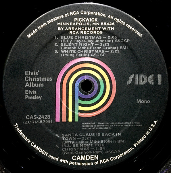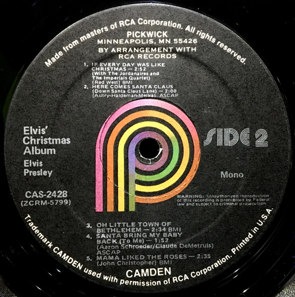 | Label: Pickwick – CAS-2428 Format: Vinyl, LP, Album, Mono, Reissue, Keel Press Country: Canada. Released: 1975 Copyright – RCA Records Trademark Camden used with kind permission of RCA Corporation. Printed in U.S.A. Made from masters of RCA Corporation. All Rights Reserved. Distributed in Canada By Pickwick Records Of Canada LTD., 106-108 McMaster Avenue, Ajax, Ontario, L1S 2E7 On the front cover STEREO is mentioned, while the labels states MONO Rights Society: BMI |