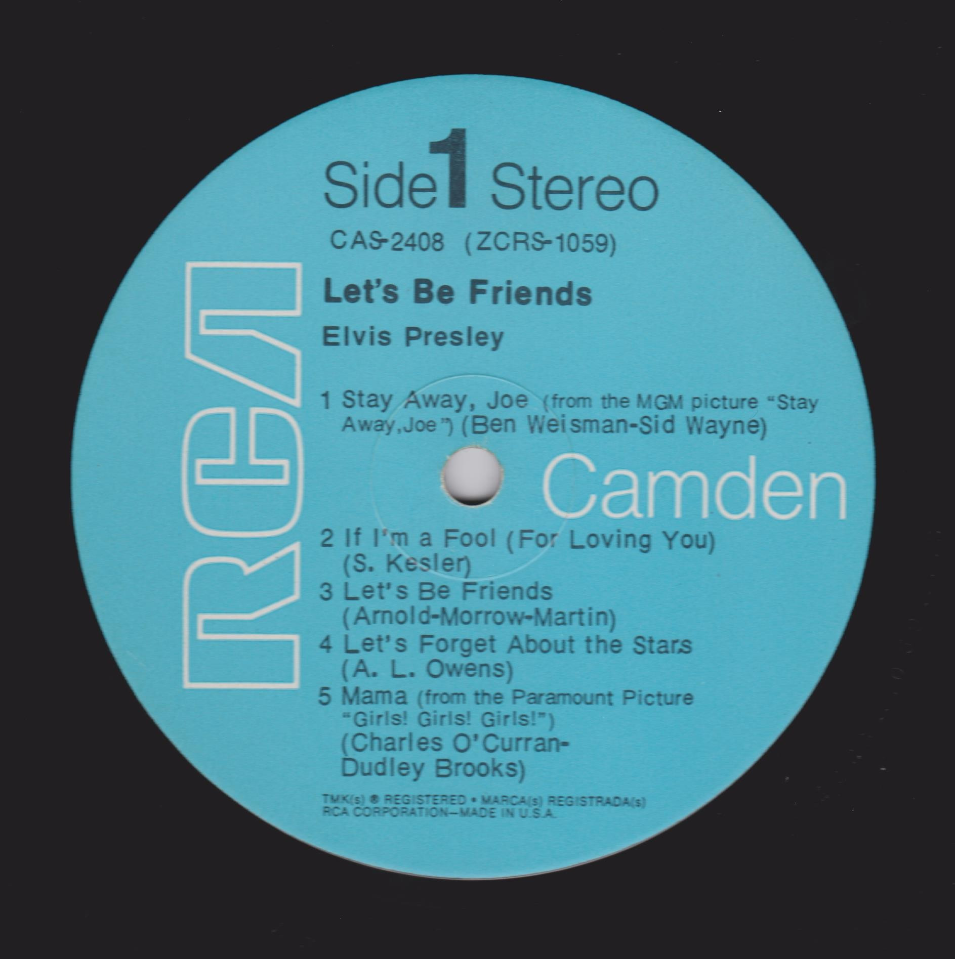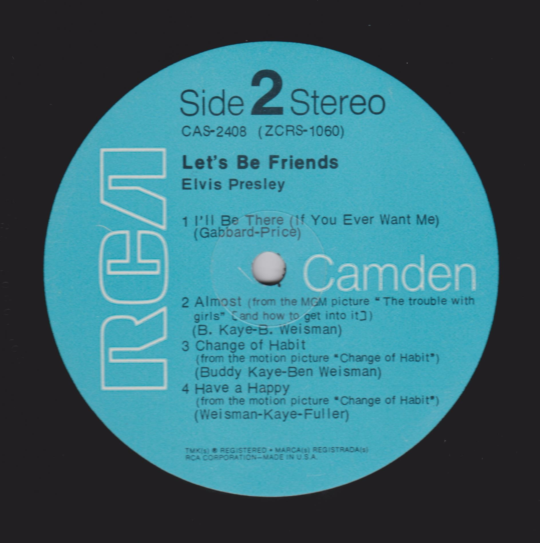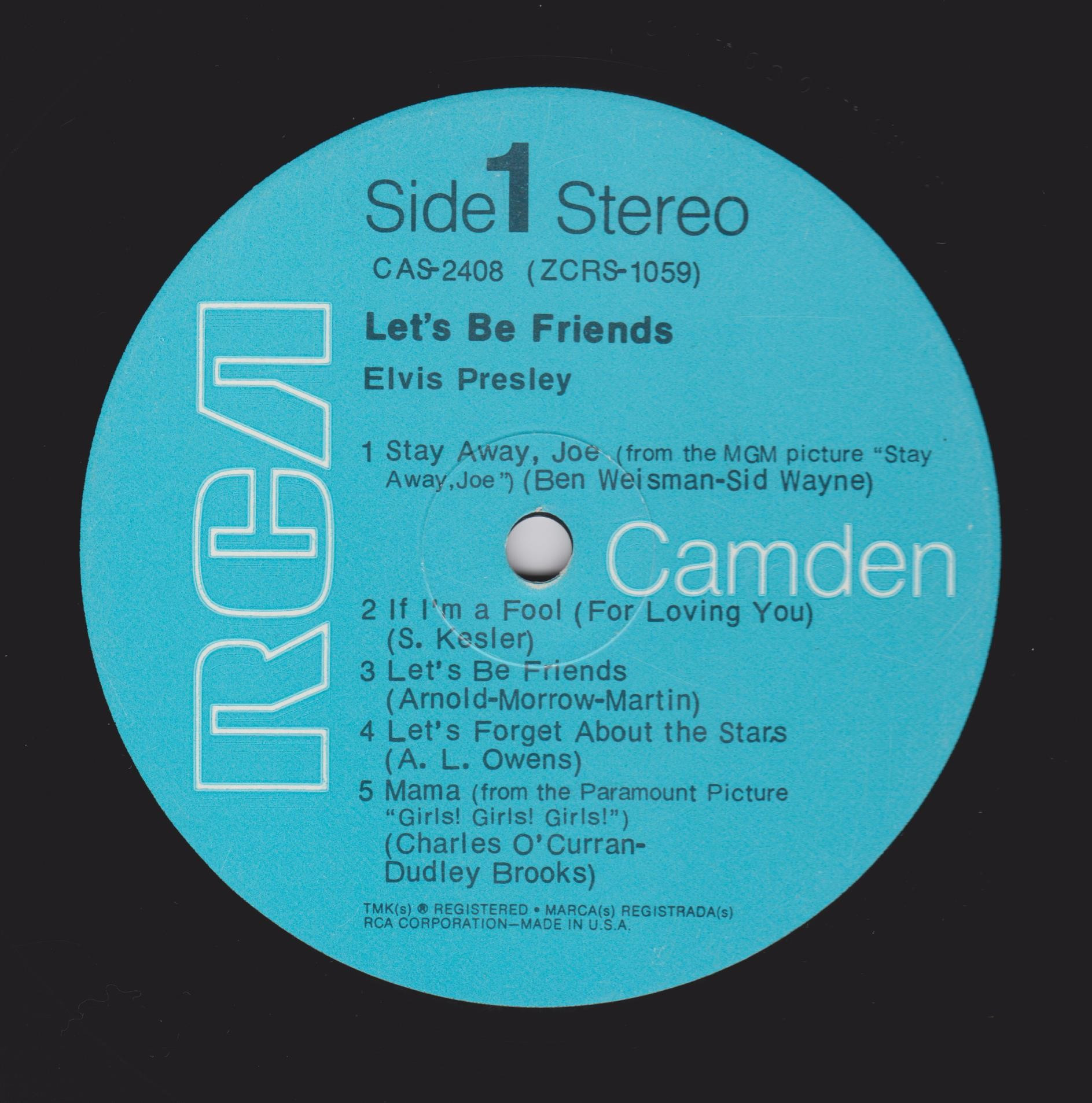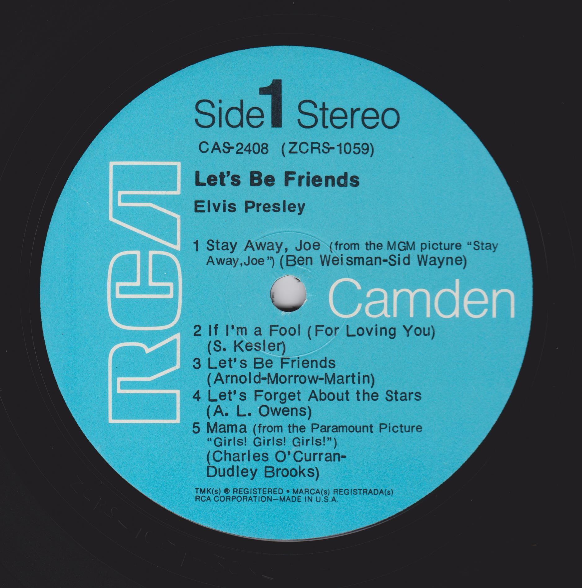 BE FRIENDS (LP) (US) RCA Camden CAS 2408 Released: April 1970 Side 1 Stay Away, Joe (Record Version) ** If I'm A Fool (For Loving You) ****** Let's Be Friends ******* Let's Forget About The Stars **** Mama * Side 2 I'll Be There ***** Almost *** Change Of Habit ******* Have A Happy ******** * Recorded: Radio Recorders,