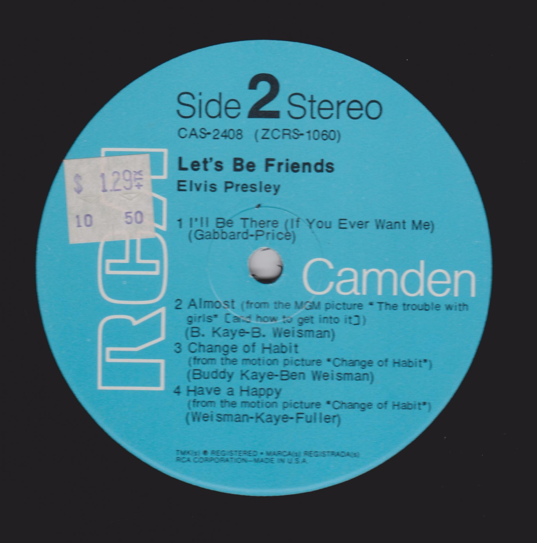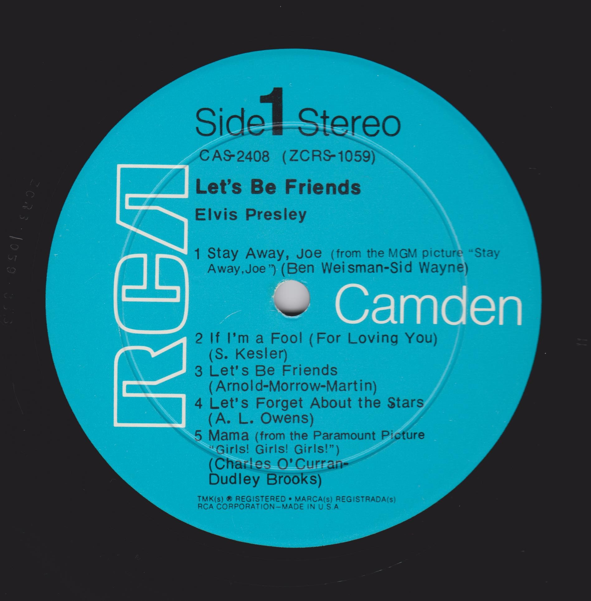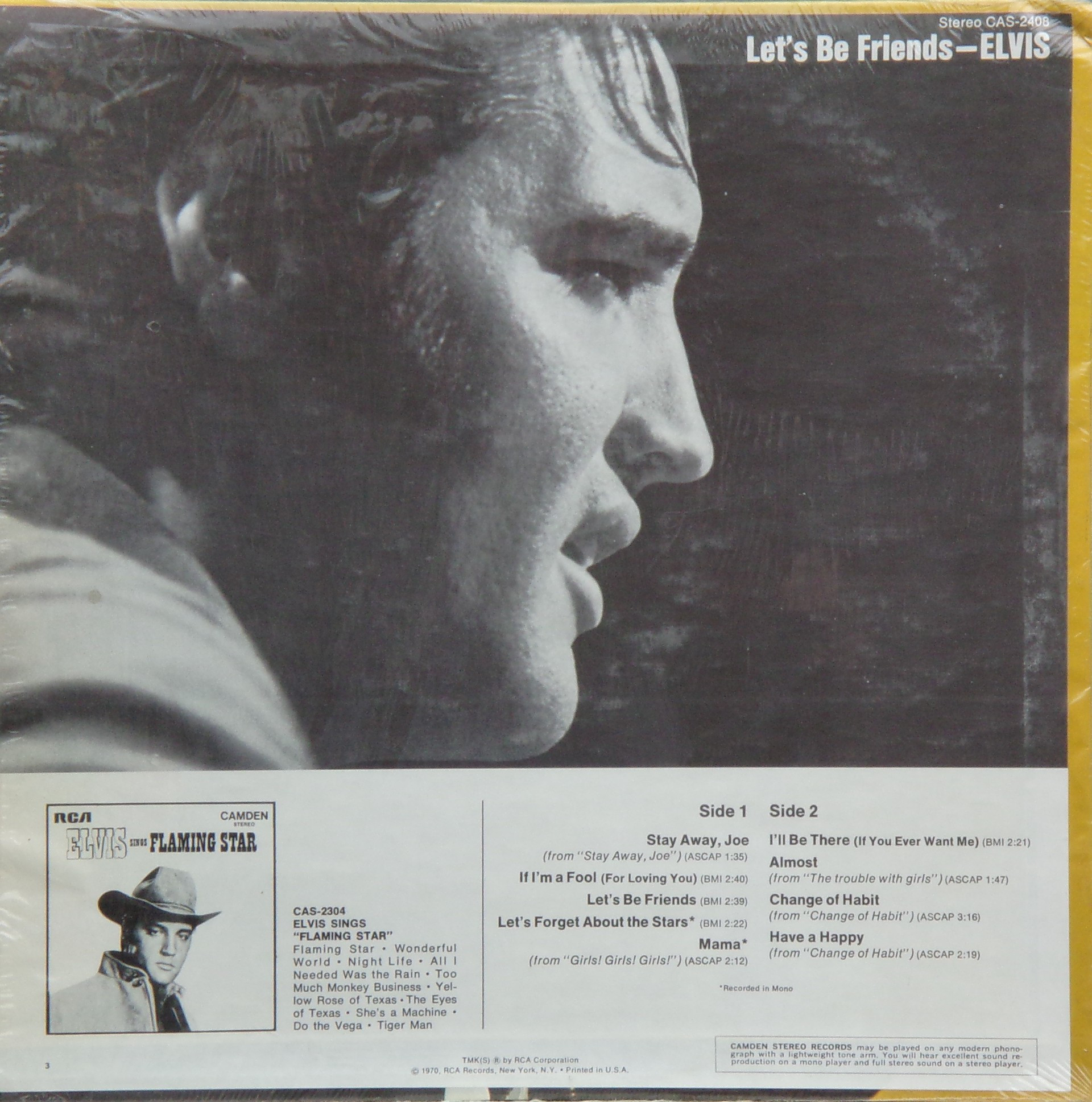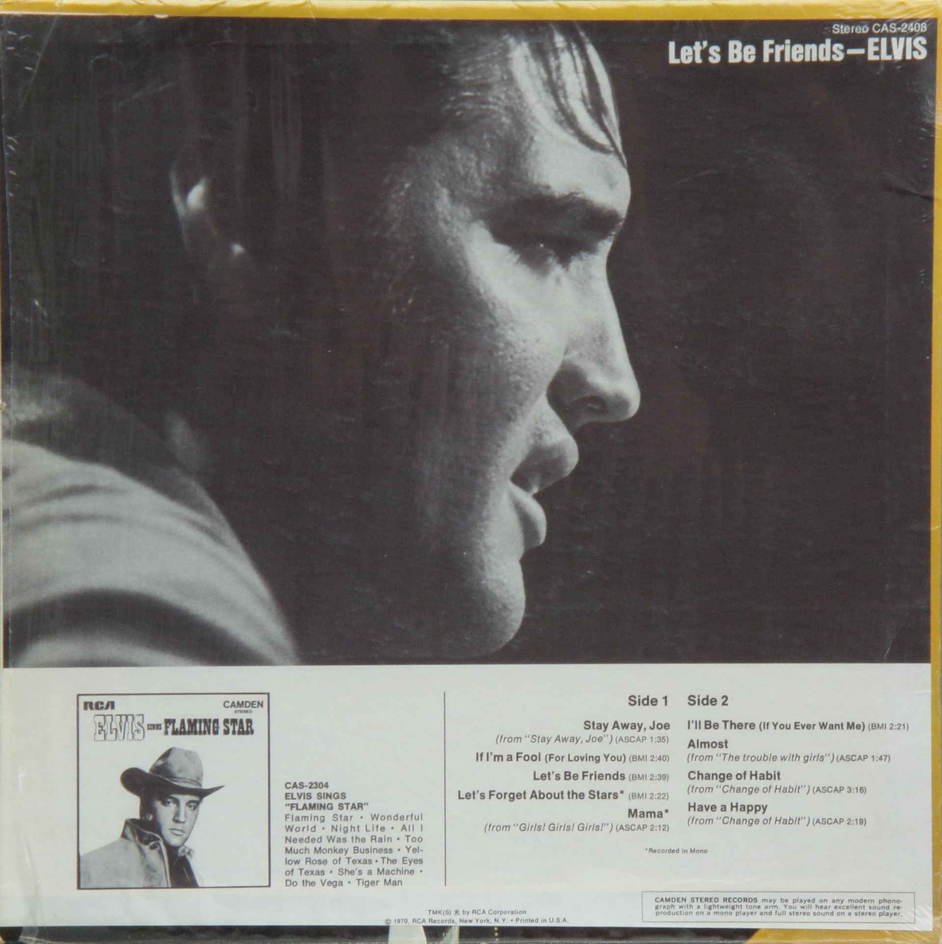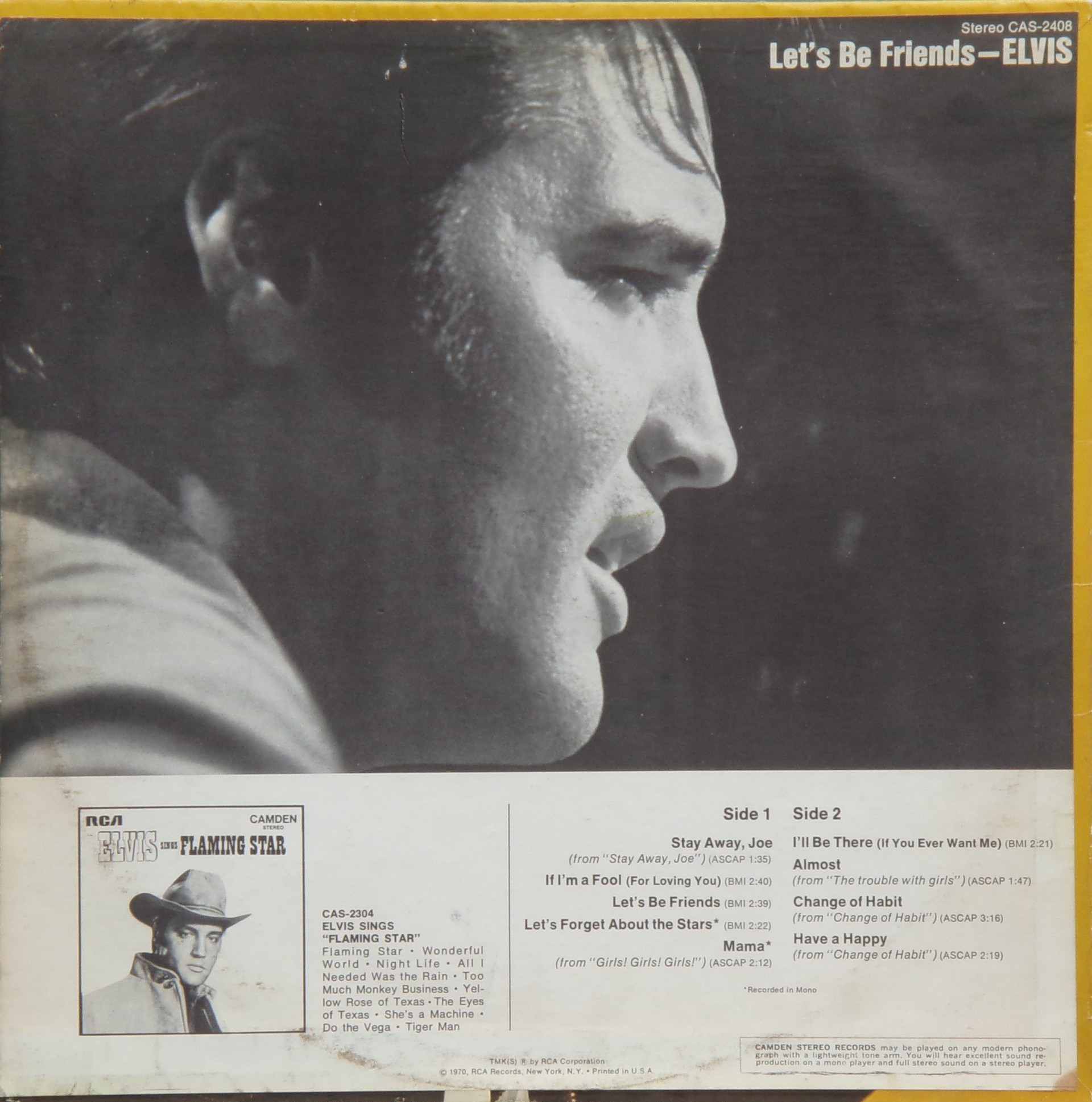 BE FRIENDS (LP) (US) RCA Camden CAS 2408 Released: April 1970 Side 1 Stay Away, Joe (Record Version) ** If I'm A Fool (For Loving You) ****** Let's Be Friends ******* Let's Forget About The Stars **** Mama * Side 2 I'll Be There ***** Almost *** Change Of Habit ******* Have A Happy ******** * Recorded: Radio Recorders,