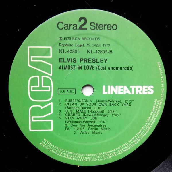 | Details : 1971 Release Front Cover : Photo of Elvis. Title top right. Catalogue number top left. Rear Cover : 3 Photos of Elvis. Catalogue number & song titles top right. Printed in U.S.A. bottom centre. Label : Orange. Flexible vinyl. Side 1 : Stereo at top. Side 2 : Stereo at top. Pressing Plant : Indianapolis Matrix Number Side 1 : XPRS - 2468 - 1S C4 (Machine Stamped) Matrix Number Side 2 : ZPRS - 2469 - 30S A2 (Machine Stamped) *NOTE* Matrix numbers differ to above. |