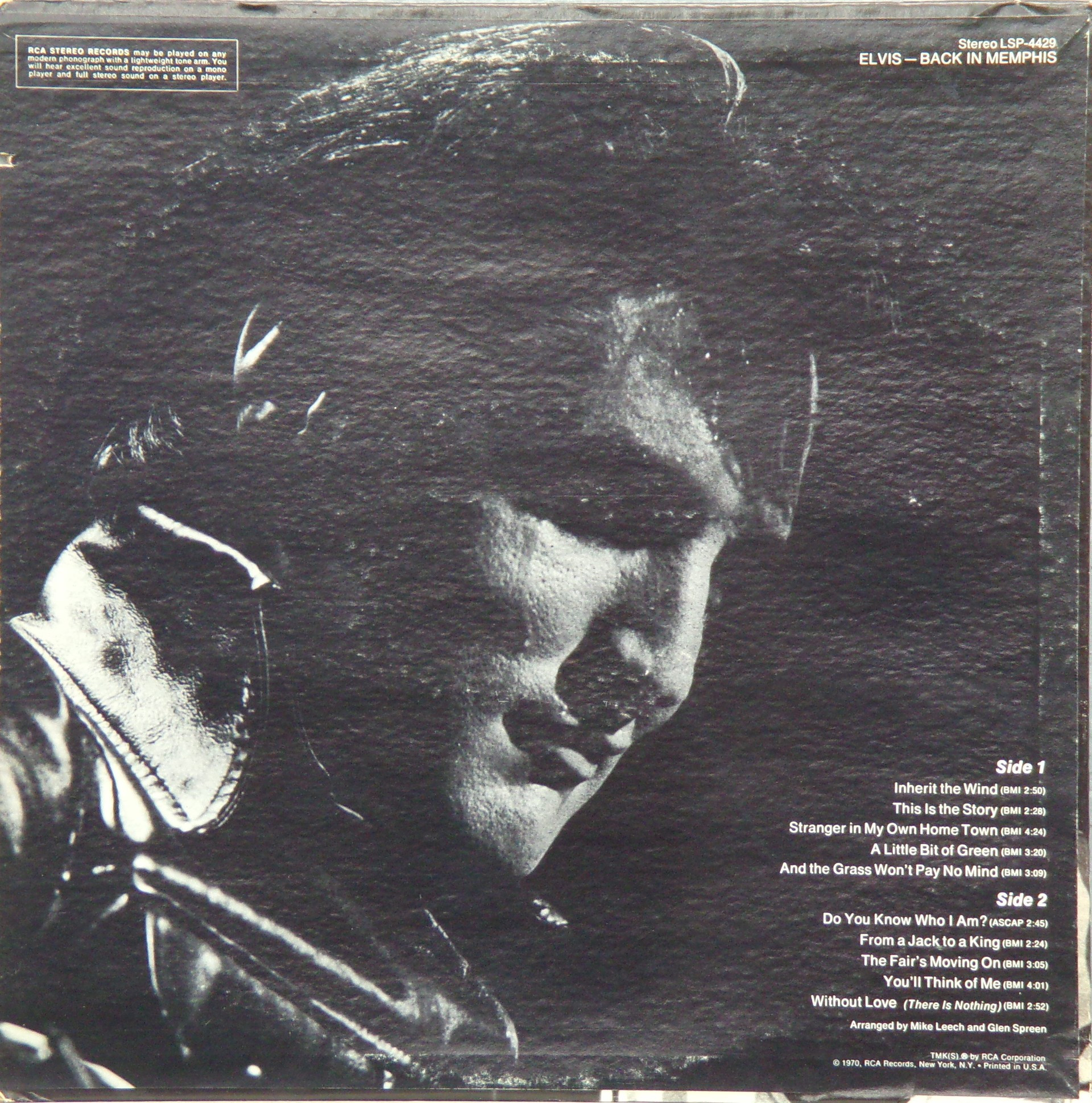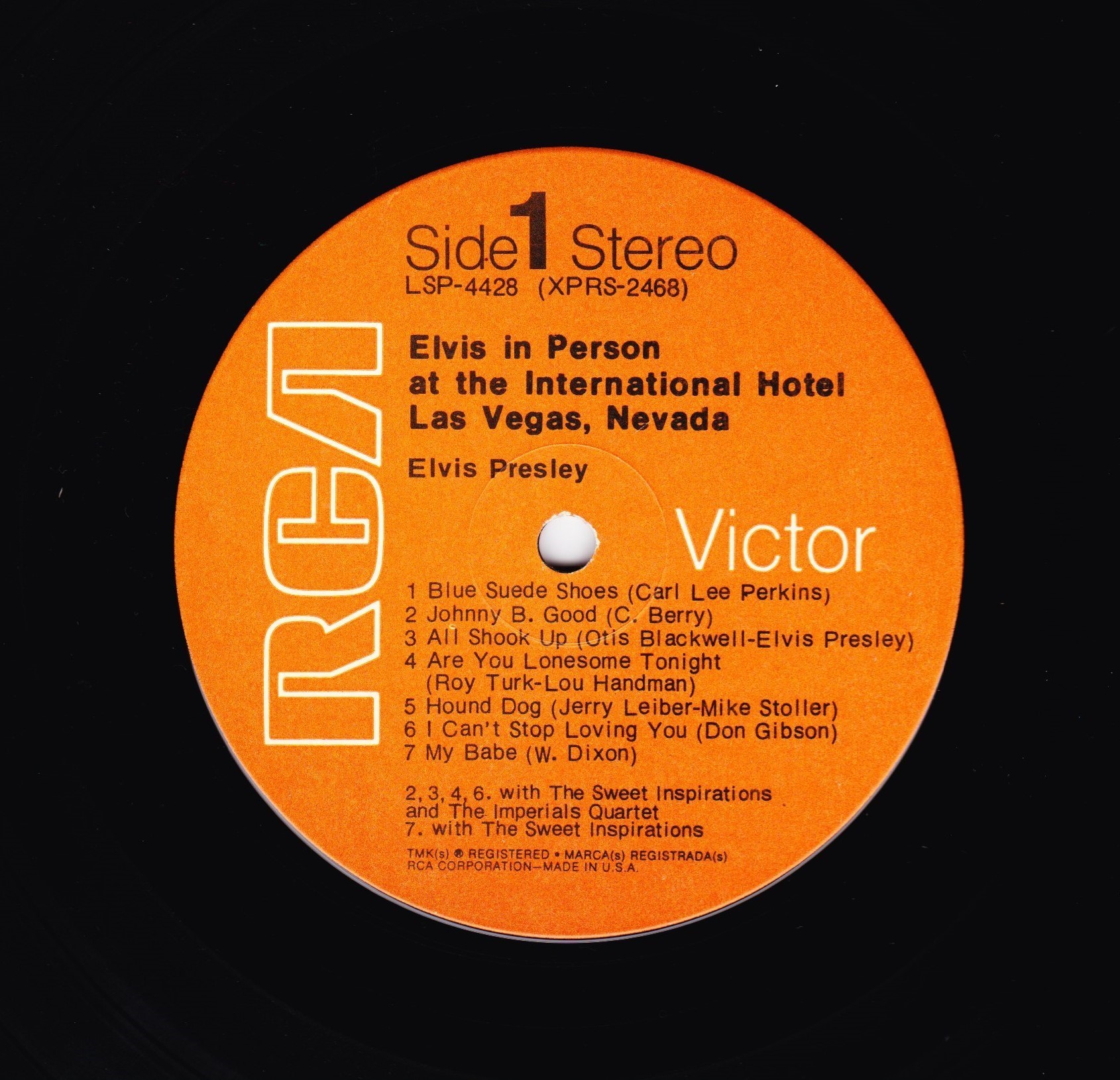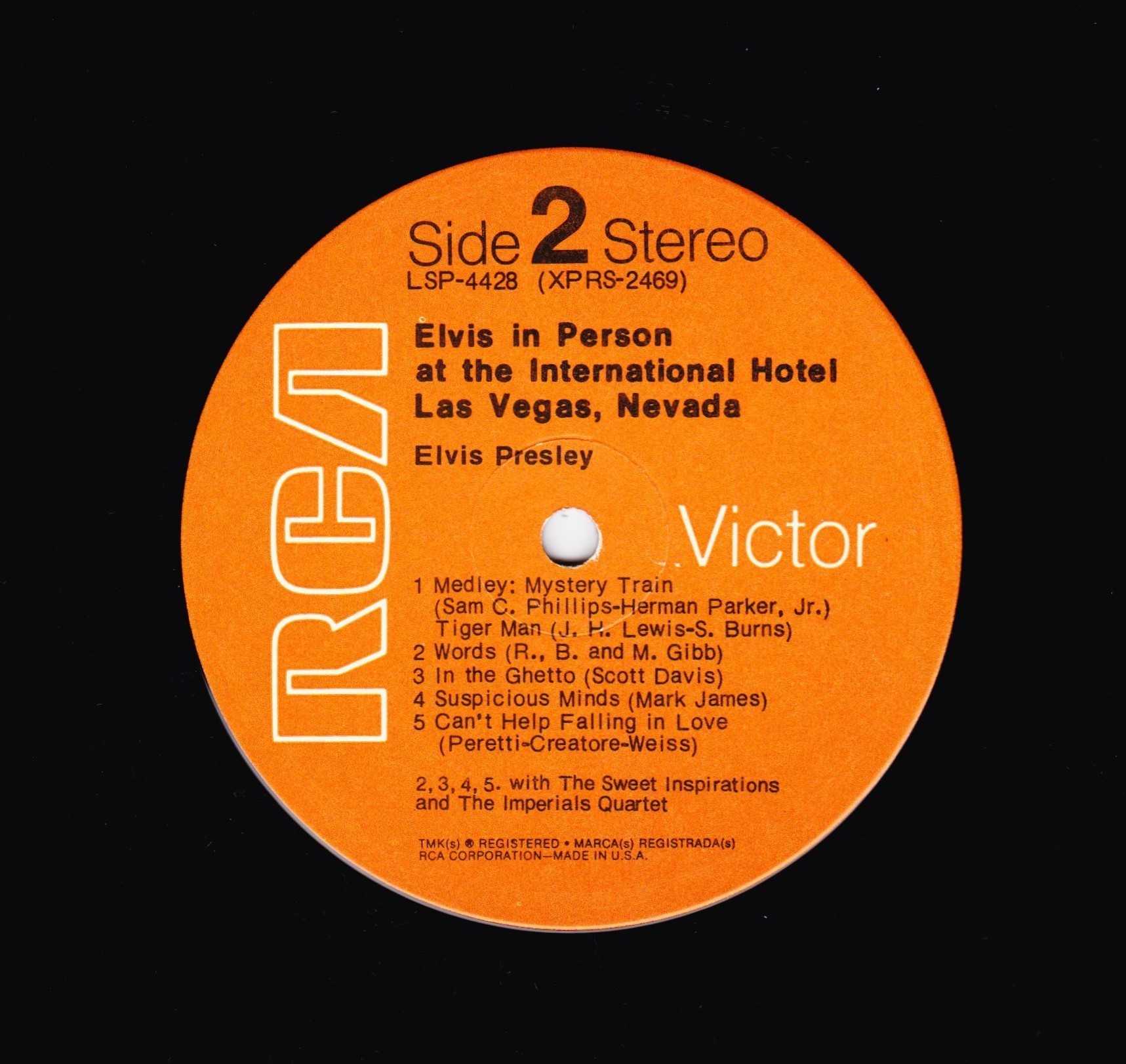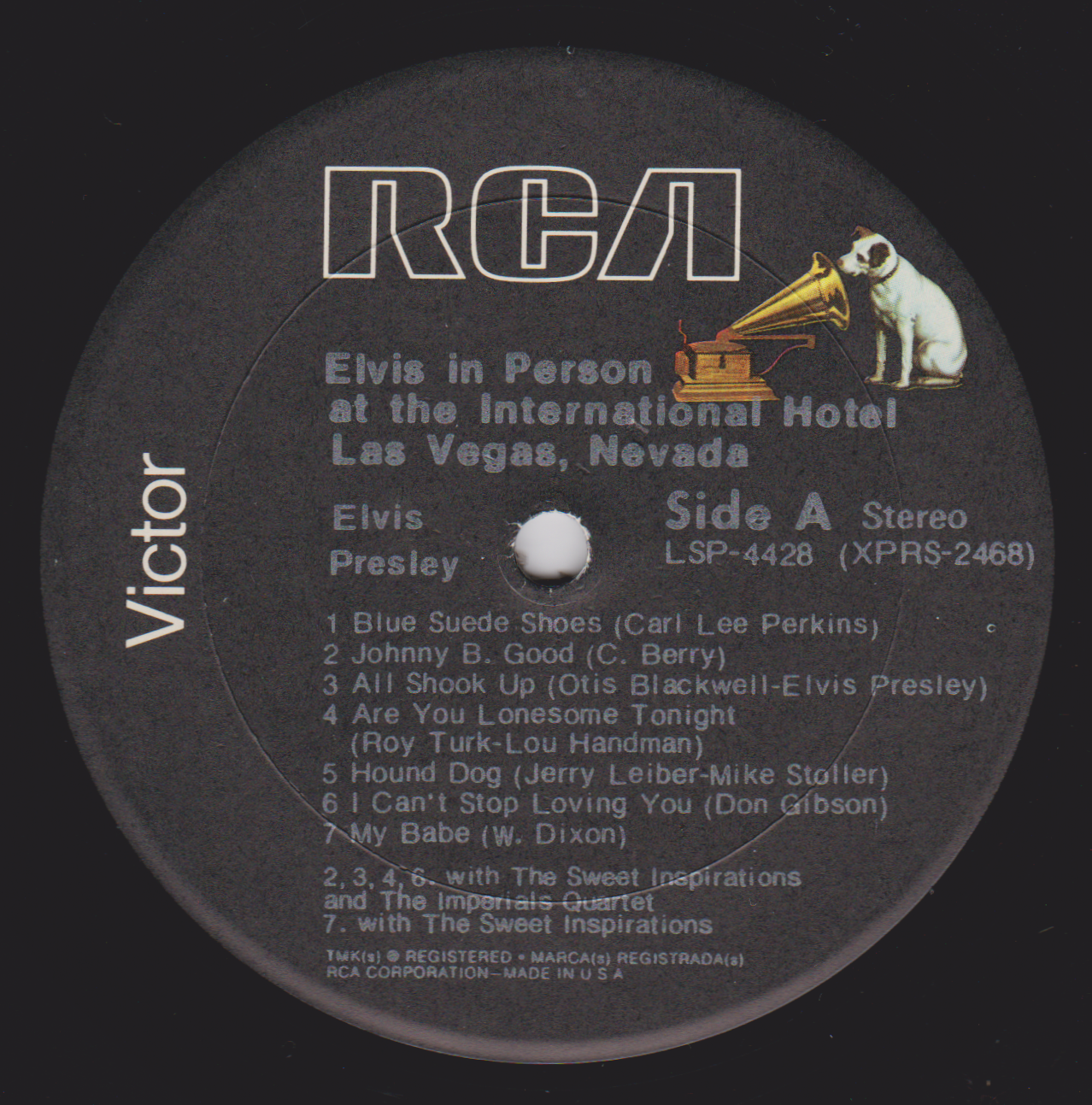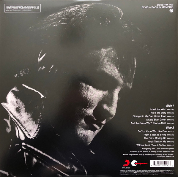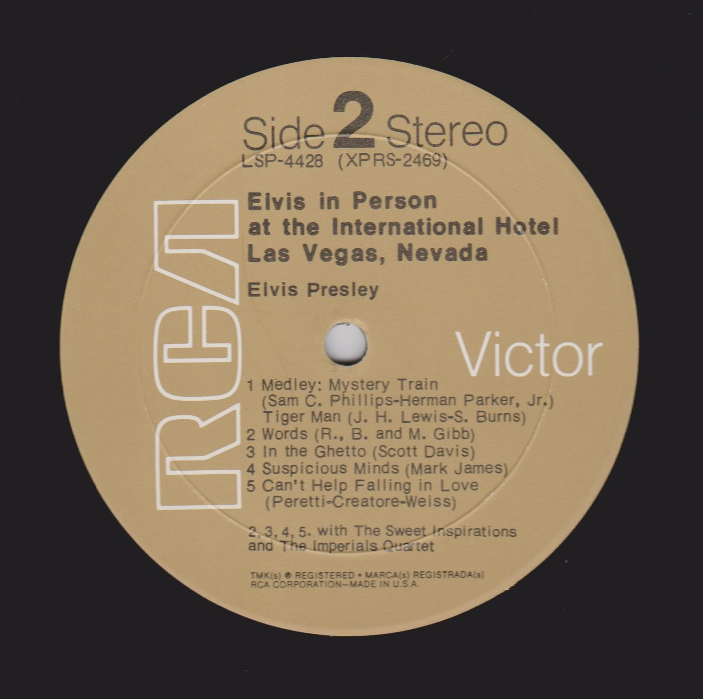 IN MEMPHIS (LP) Brief History : This single LP is the second half of the double album "LSP-6020 From Memphis to Vegas / From Vegas to Memphis". In November 1970, RCA reissued this as an individual album. It has been issued separately ever since. Label: RCA Victor – LSP-4429 1st pressing with orange labels. Matrix / Runout (Side A Label): XPRS 2470 |