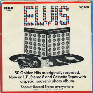 | Details : 1976 Release Front Cover : Photo of Elvis. Title right centre. Catalogue number top left. Rear Cover : Photo of Elvis. Catalogue number top right. Printed in U.S.A. bottom right. Label : Tan. Flexible vinyl. Side 1 : Stereo at top. Side 2 : Stereo at top. Pressing Plant : Indianapolis Matrix Number Side 1 : XPRS - 2470 - 34 C (Hand Etched) A2 (Machine Stamped) Matrix Number Side 2 : XPRS - 2471 - 32S A3 (Machine Stamped) C6 *NOTE* No number on rear cover. |