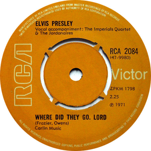 | Label: RCA Victor – RCA 2084, RCA Victor – 47-9980 Format: Vinyl, 7", 45 RPM, Single, Push-out Centre Country: UK Released: 1971 Published By – Frank Music Publishers The US Cat number 47-9980 is shown in brackets on the label. Stamped runouts Matrix / Runout ([Variant 1] side A): ZPKM 1800 2 |