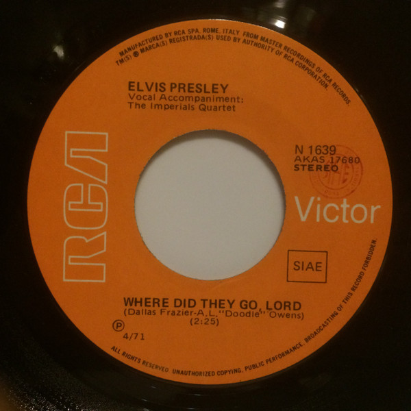 | Label: RCA Victor – N 1639 Format: Vinyl, 7", 45 RPM, Stereo Country: Italy Released: Apr 1971 Printed By – Corporazione Arti Grafiche N on back cover. Matrix / Runout (Runout side A): AKAS 17680 1S - 1A 1 |