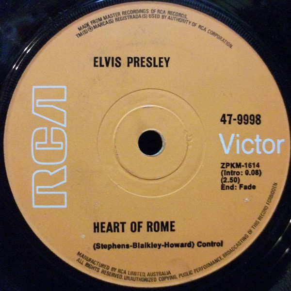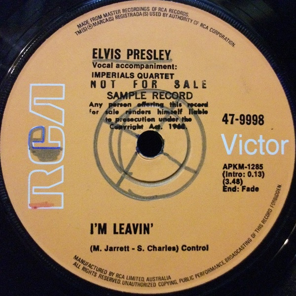 Label: RCA Victor – 47-9998 Format: Vinyl, 7", 45 RPM, Single, Promo Country: Australia Released: 1971 Manufactured By – RCA Limited, Australia Matrix / Runout (Side A): APKM 1285 |
