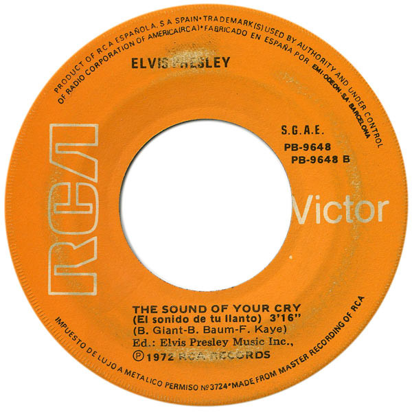 | Label: RCA Victor – 49840, RCA Victor – 74-0572 Series: Hit-Parade Format: Vinyl, 7", 45 RPM, Single, Stereo Country: France Released: 1971 Printed By – S.I.A.T. RCA 6, Rond-Point des Champs Elysées - Paris Side A edited for single use from the "Elvis Sings