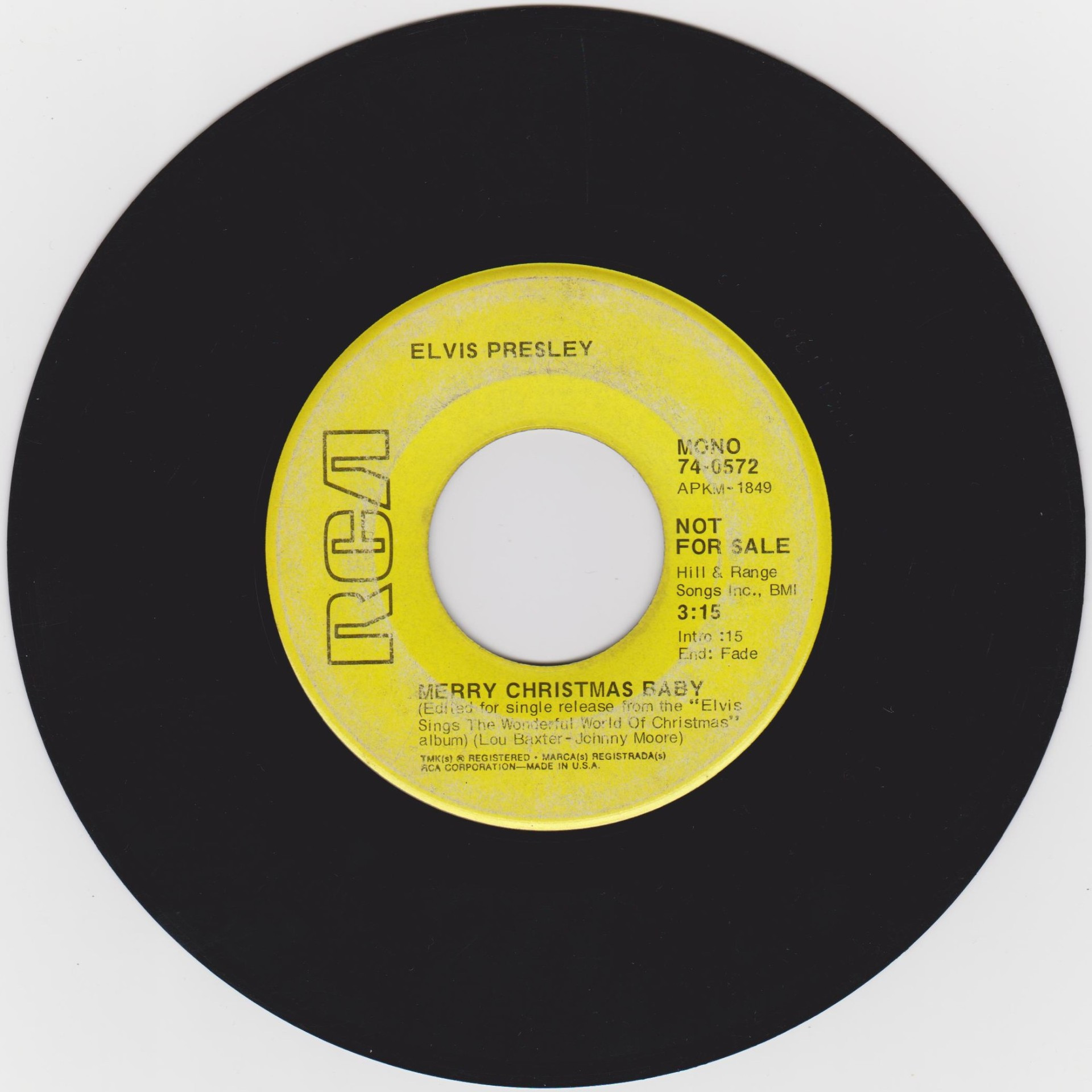 No Picture Sleeve with this release. Label : Yellow with black lettering. Pressing Plant : Indianapolis Matrix Number Side 1 : AP - KM 1849 - 1S A1 (Machine Stamped) Matrix Number Side 2 : AP - KM 1270 - 1S A1 (Machine Stamped) *NOTE* "Not For Sale" copy. |