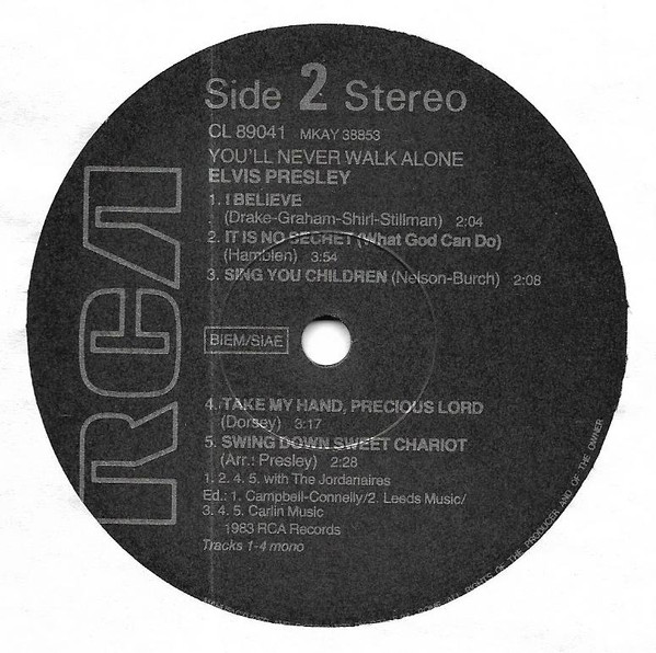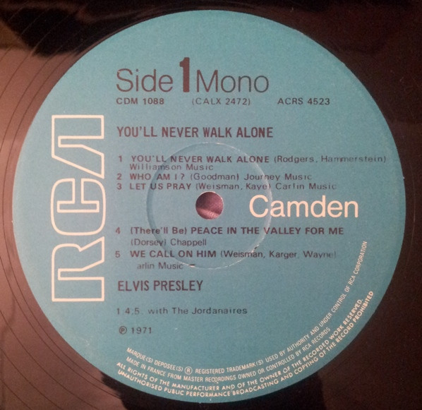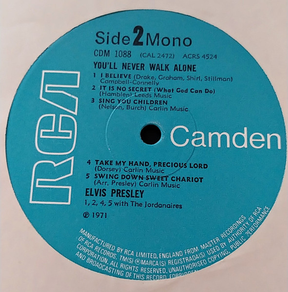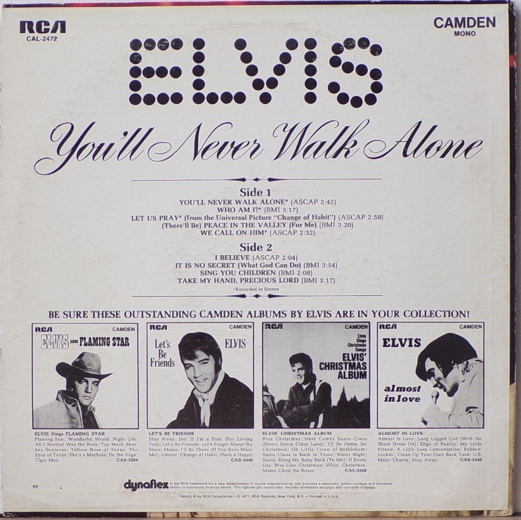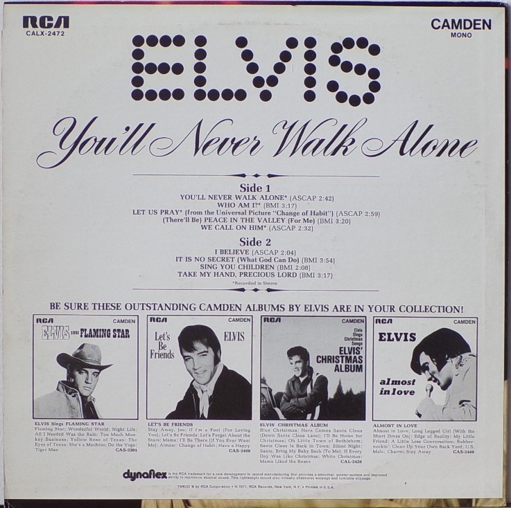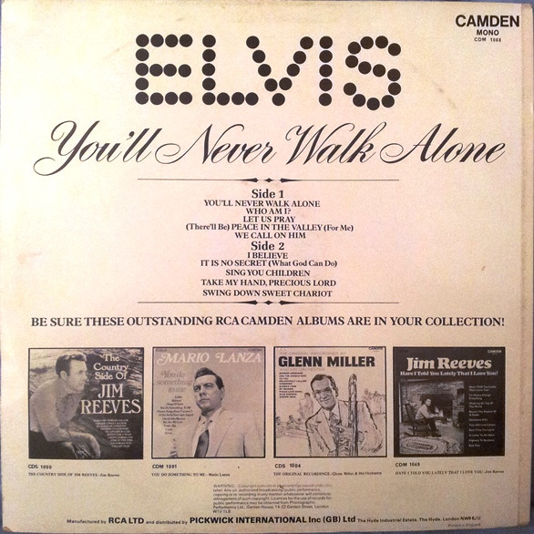 NEVER WALK ALONE (LP) (US) RCA Camden CAL 2472 Released: March 1971 Side 1 You'll Never Walk Alone Who Am I * Let Us Pray ** Peace In The Valley We Call On Him Side 2 I Believe It Is No Secret (What God Can Do) Sing You Children Take My Hand, Precious Lord * Recorded: American Studios, Memphis,
