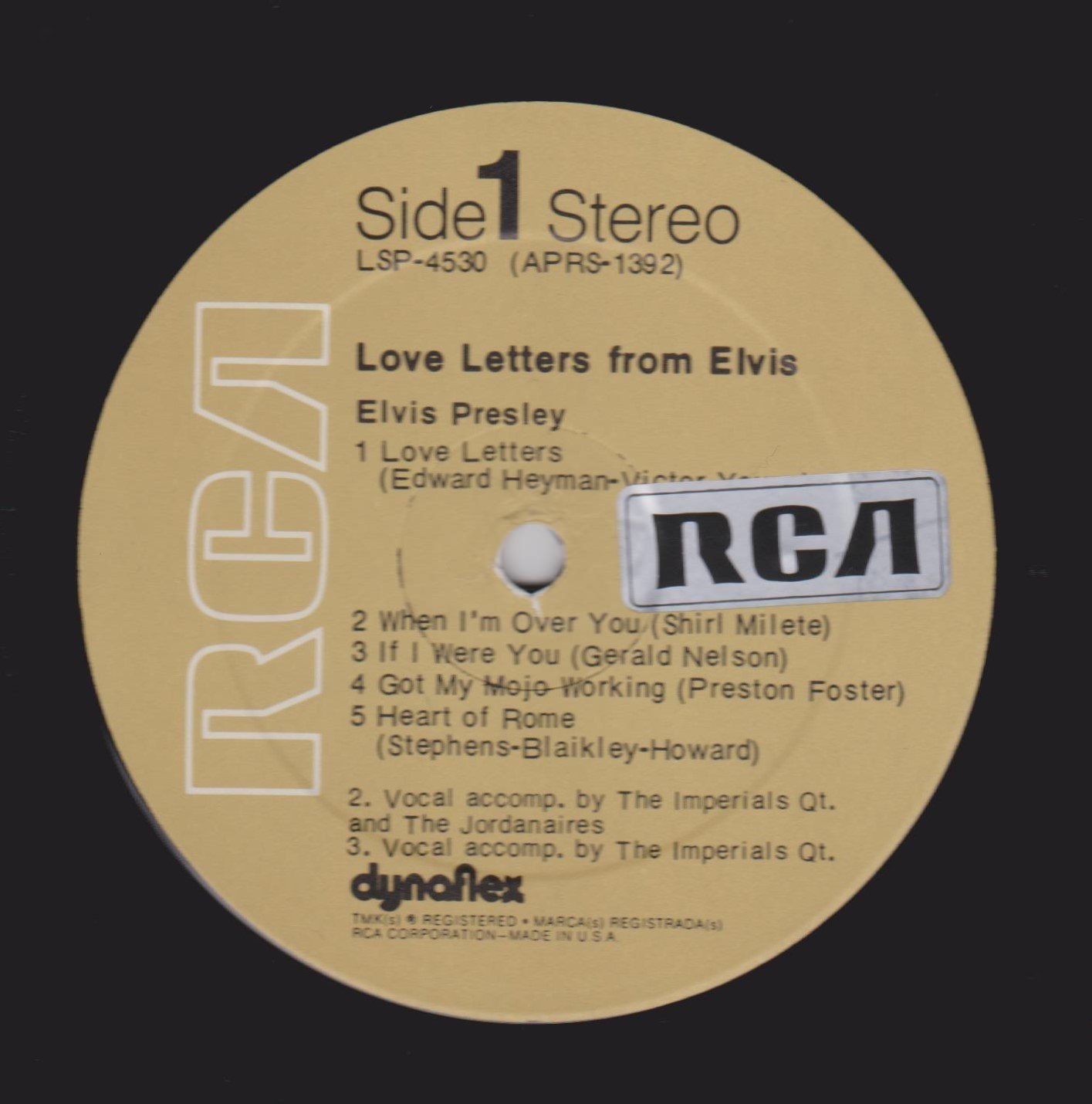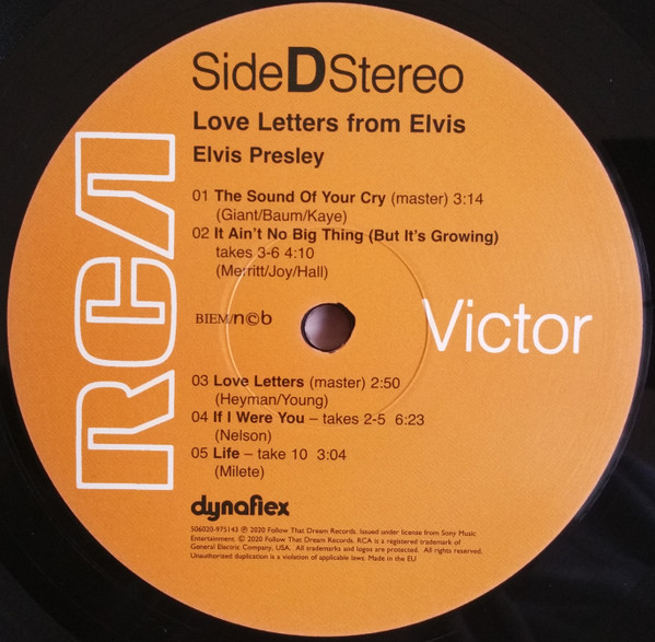 LETTERS FROM ELVIS (LP) (US) RCA LSP 4530 Released: June 1971 Side 1 Love Letters (1970) **** When I'm Over You **** If I Were You ***** Got My Mojo Working - Keep Your Hands Off Of It ** Heart Of Rome *** Side 2 Only Believe This Is Our Dance *** Cindy, Cindy * I'll Never Know *** It Ain't No Big Thing (But It's Growing) *** Life * Recorded:
