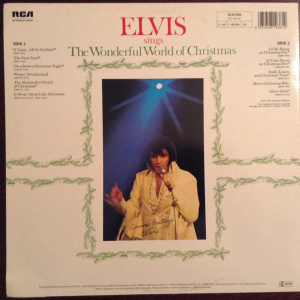 SINGS THE WONDERFUL WORLD OF CHRISTMAS (LP) (US) RCA LSP 4579 Released: September 1971 Side 1 O Come, All Ye Faithful ** First Noel ** On A Snowy Christmas Night ** Winter Wonderland ** Wonderful World Of Christmas ** It Won't Seem Like Christmas (Without You) * Side 2 I'll Be Home On Christmas Day ** If I Get Home On Christmas Day * Holly Leaves and Christmas Trees * Merry Christmas Baby * Silver Bells * * Recorded: RCA Studio B,