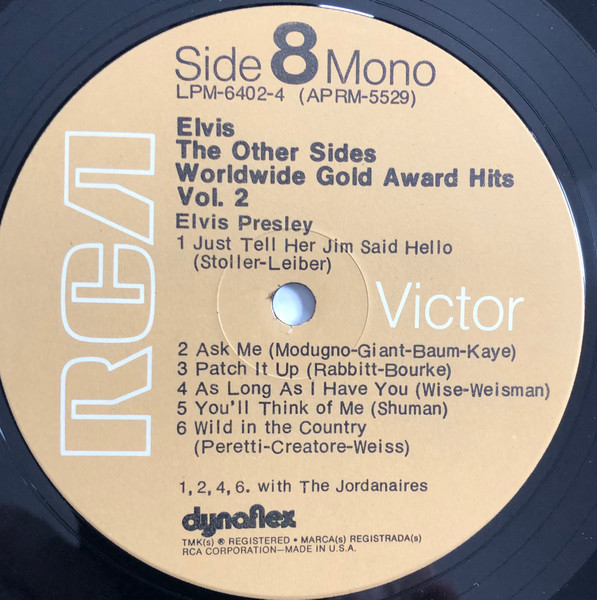Sides Brief History : The Other Sides - Elvis Worldwide Gold Award Hits Vol. 2 is a compilation album by Elvis Presley, released in August 1971. It was certified Gold on July 15, 1999 by the RIAA. Orange Label: Details : |
