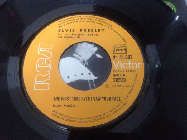 | Label: RCA Victor – No 41.007 Format: Vinyl, 7", 45 RPM Country: France Released: 1972 From: Elvis' Standing Room Only Album Matrix / Runout (Side A): 7YPART 71005 I |