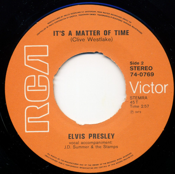 | Label: RCA Victor – 74-0769, RCA – 74-0769 Format: Vinyl, 7", 45 RPM, Single, Stereo Country: Netherlands Released: Nov 1972 Manufactured By – Inelco Nederland N.V. RCA on sleeve Rights Society: STEMRA |