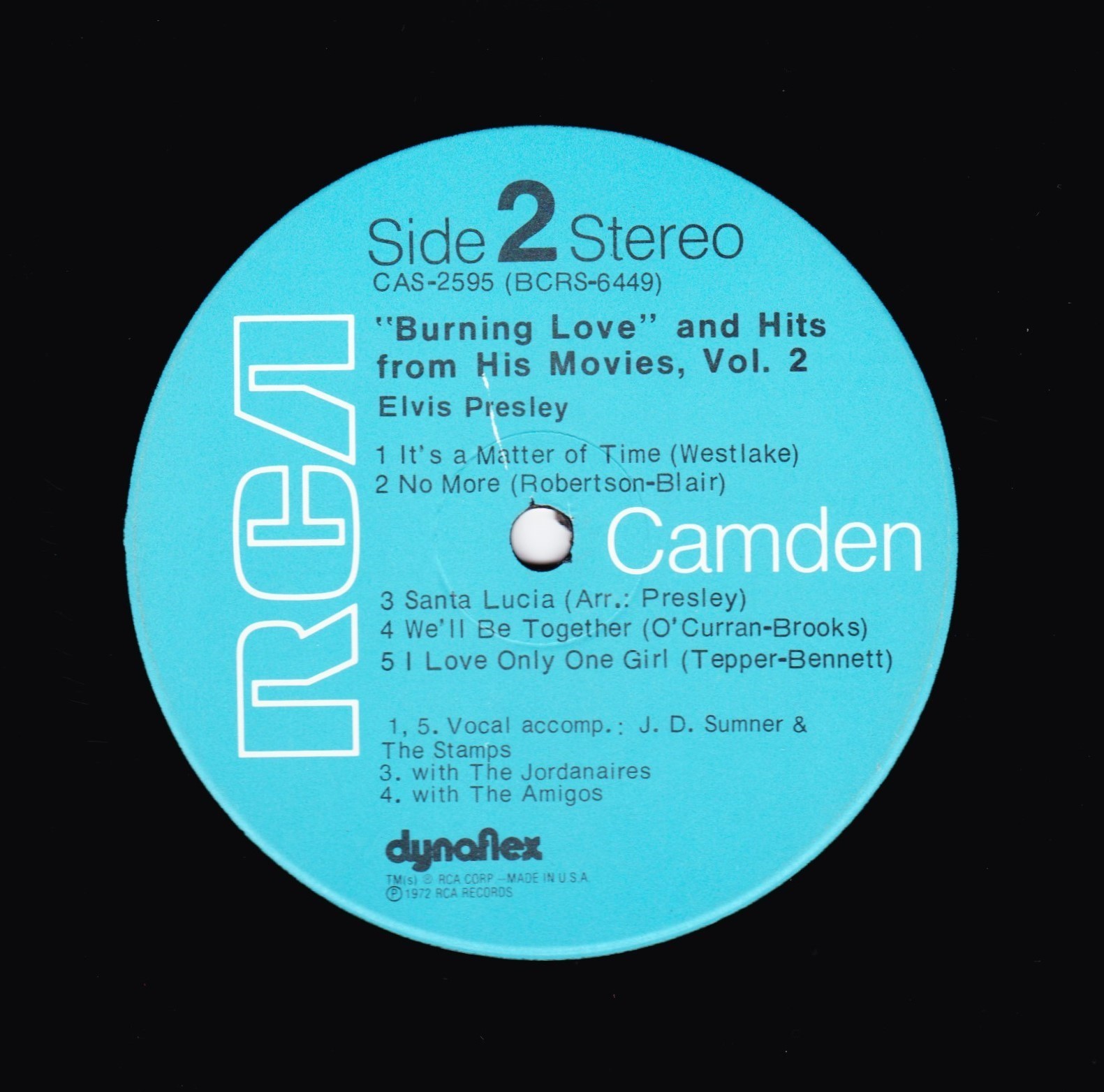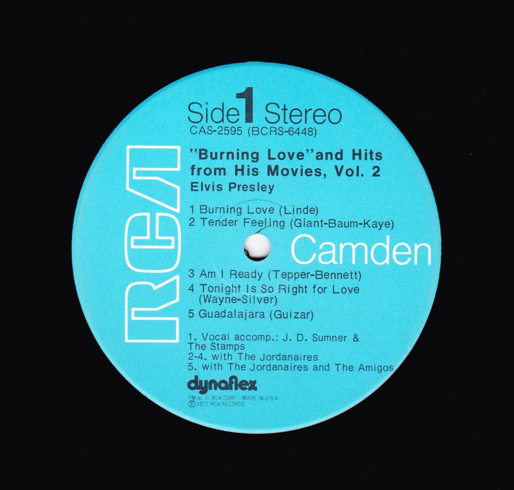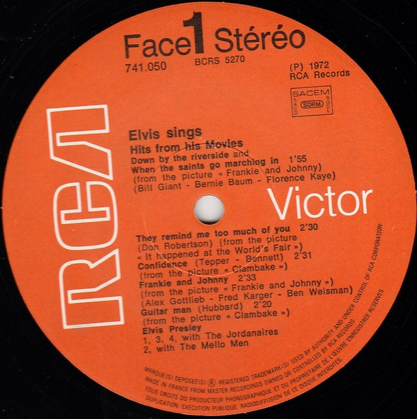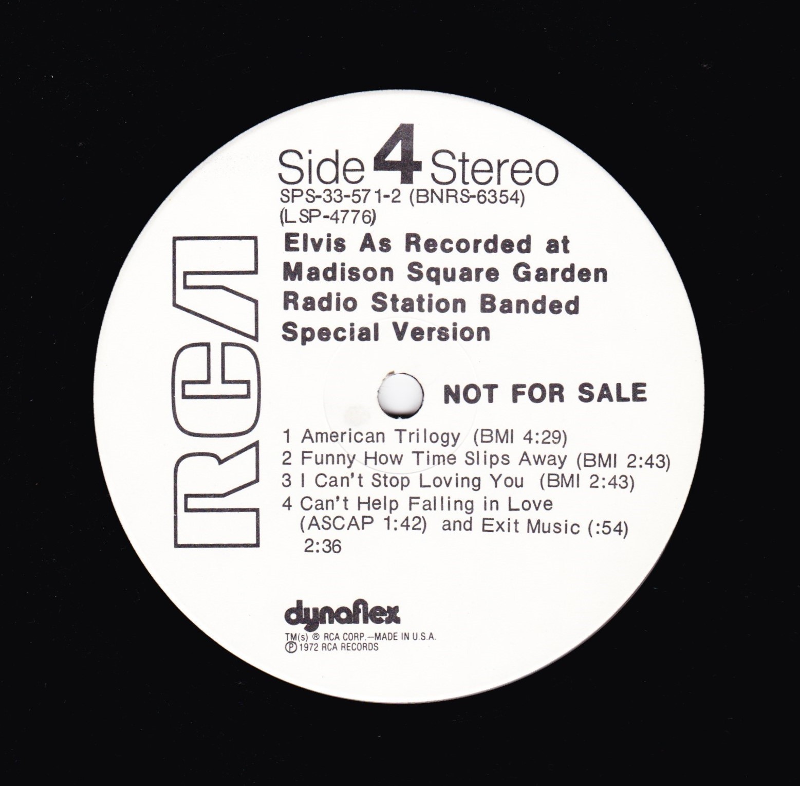 | ront Cover : Title on top. Catalogue number top right. Rear Cover : Advertising 2 Elvis Worldwide box sets. Catalogue number top right. Printed in U.S.A. bottom centre. Label : Orange. Dynaflex vinyl. Side 1 : Stereo at top. Side 2 : Stereo at top. Pressing Plant : Indianapolis Matrix Number Side 1 : APRS - 2007 - 5S A3 (Machine Stamped) Matrix Number Side 2 : APRS - 2008 - 5S A2 (Machine Stamped) *NOTE* Front cover sticker Promotional copy for DJ use "Not For Sale". |