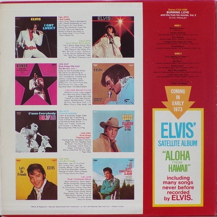 LOVE AND HITS FROM HIS MOVIES, Brief History : Burning Love and Hits From His Movies, Volume 2 is