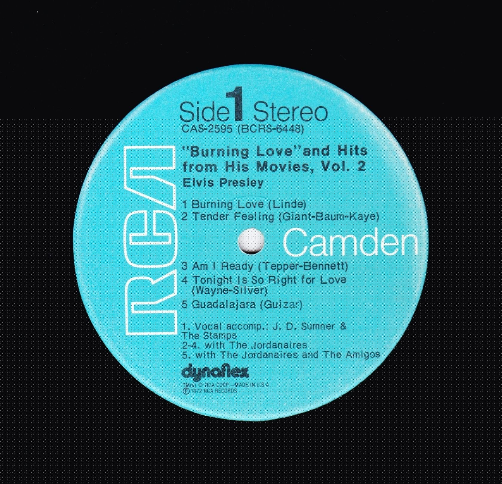 right. Camden bottom right. Rear Cover : Advertising 8 Elvis budget albums. Catalogue number top right. Printed in U.S.A. bottom. Advert bottom right for coming soon album "Aloha From Hawaii". Label : Blue. Dynaflex vinyl. Side 1 : Stereo at top. Side 2 : Stereo at top. Pressing Plant : Rockaway (Hand Etched) Matrix Number Side 1 : BCRS - 6448 - 1S A2AP (Hand Etched) Matrix Number Side 2 : BCRS - 6449 - 1S AIBG (Hand Etched) *NOTE* Front cover has no yellow splash star highlighting the limited special bonus photo. This is one of 2 covers that came with this release. |