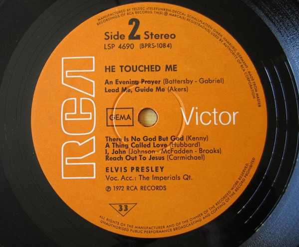 mbH, form Master Recordings of RCA Back cover differs from later re-releases; Smaller tracklist and with a listing of all Elvis’ sacred songs. Rights Society: GEMA |
