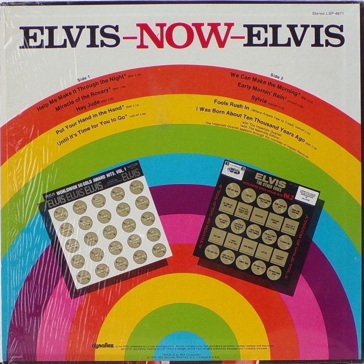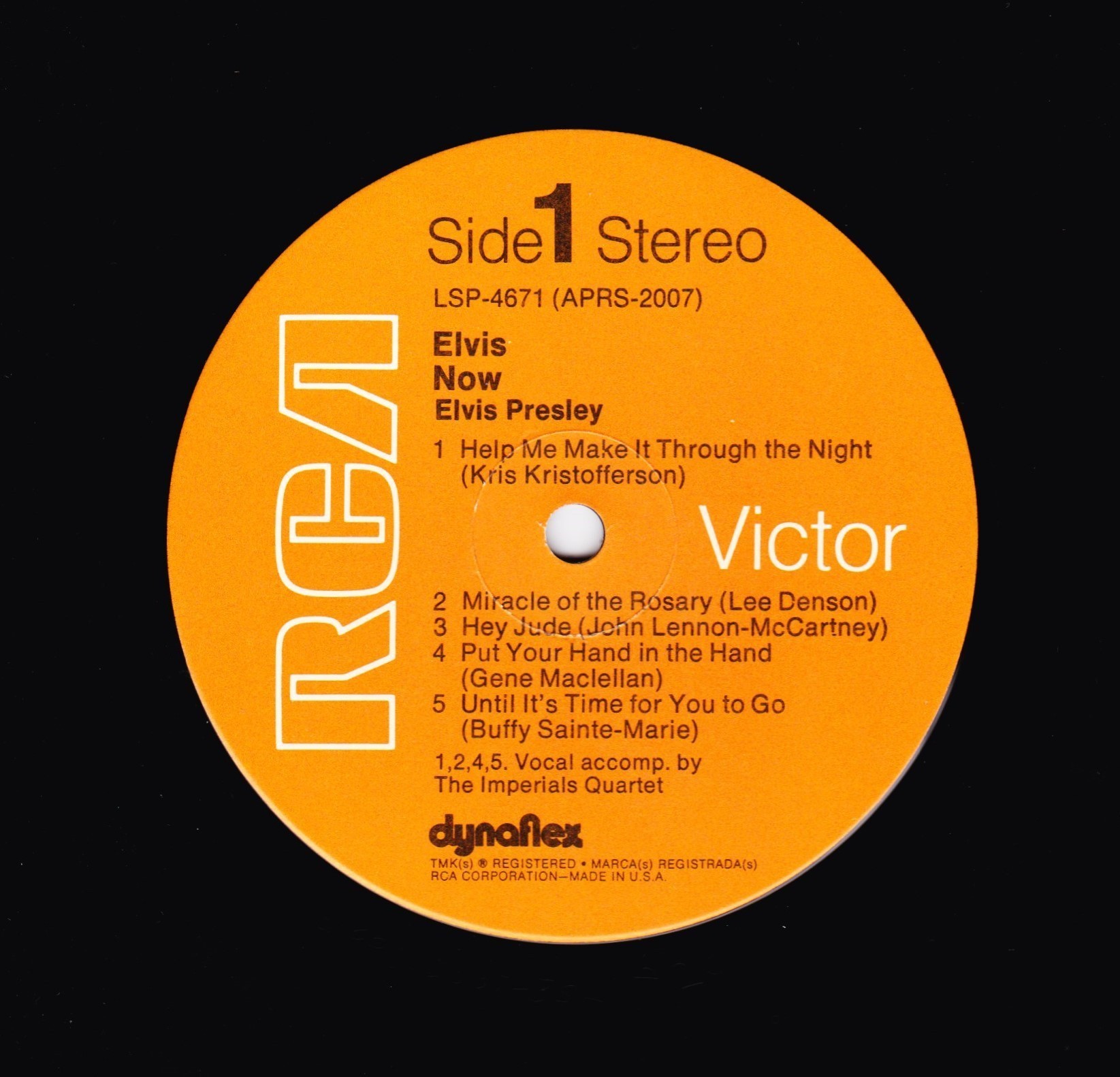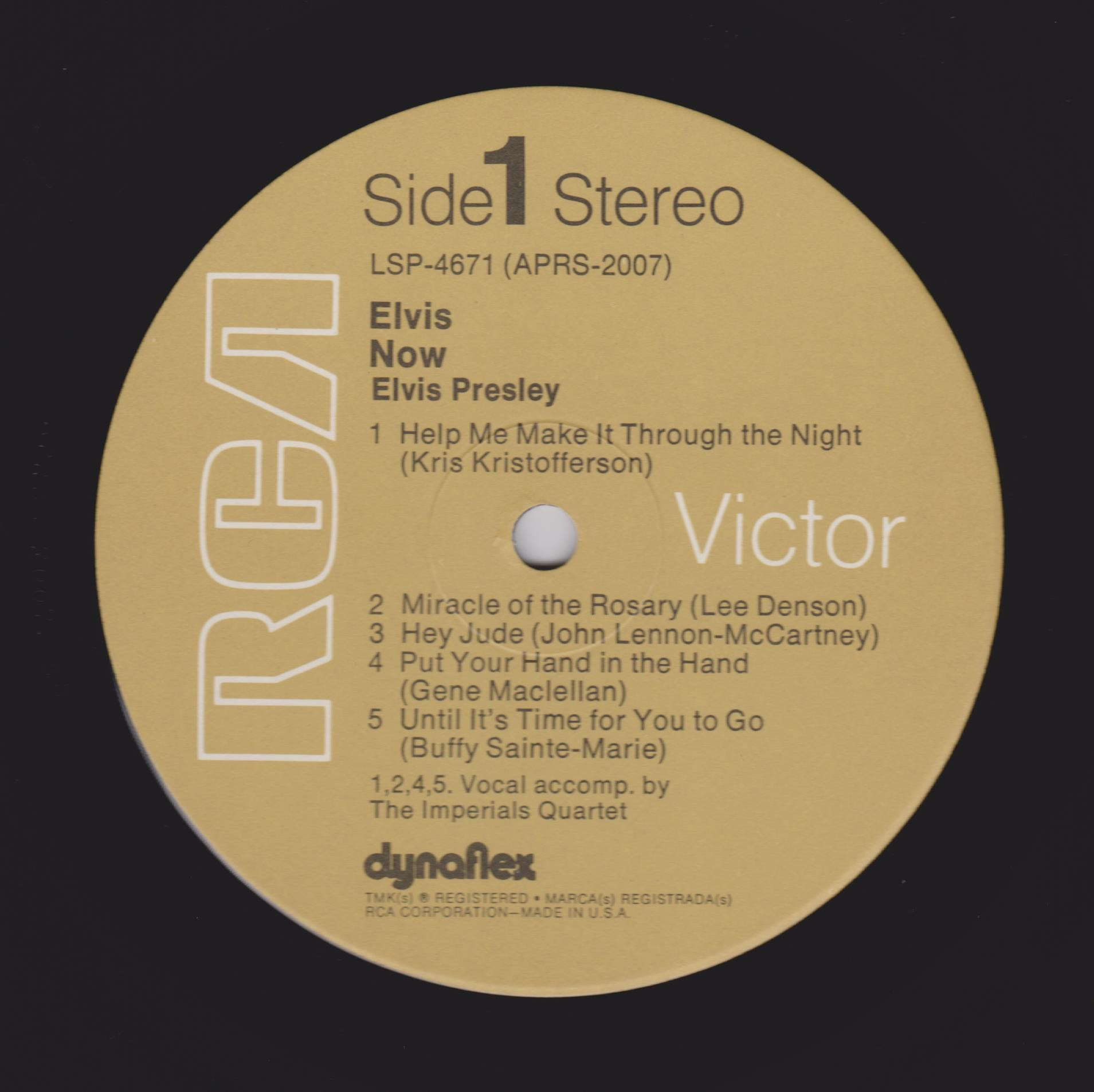 NOW (LP) (US) RCA LSP 4671 Released: February 1972 Side 1 Help Me Make It Through The Night ****** Miracle Of The Rosary ***** Hey Jude * Put Your Hand In The Hand ********* Until It's Time For You To Go ****** Side 2 We Can Make The Morning ******** Early Mornin' Rain **** Sylvia *** Fools Rush In (Where Angels Fear To Tread) ******* I Was Born About Ten Thousand Years Ago ** * Recorded: American Studios, Memphis, January