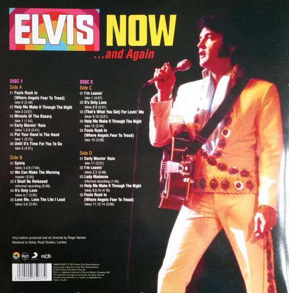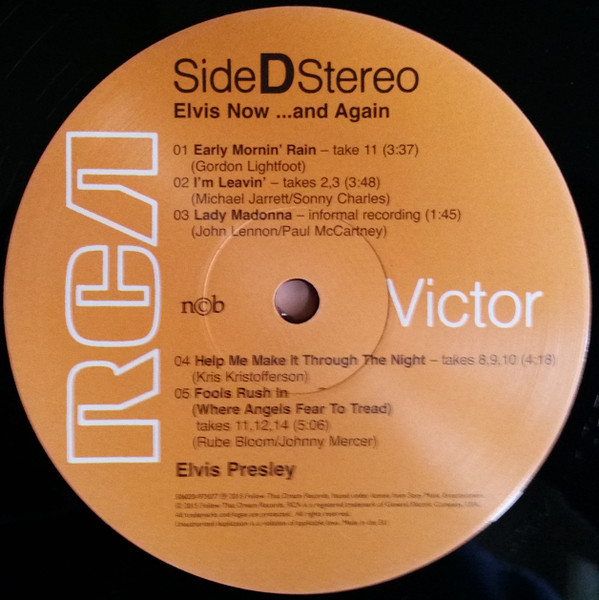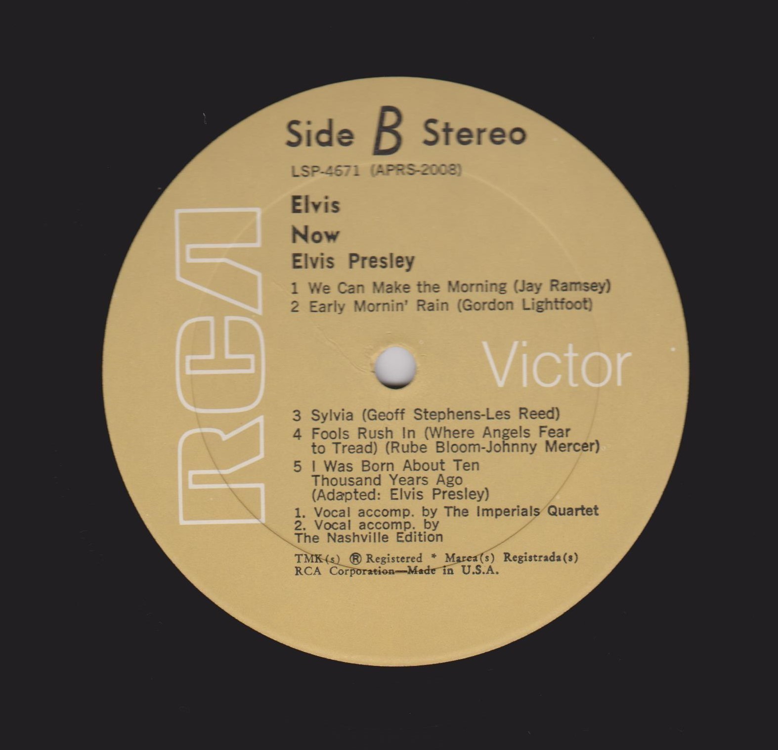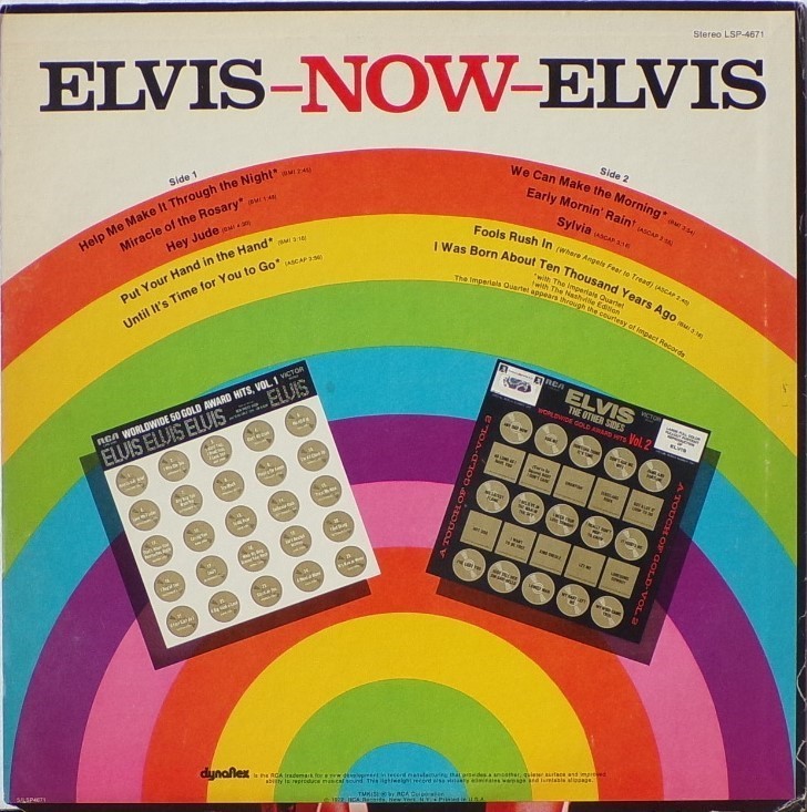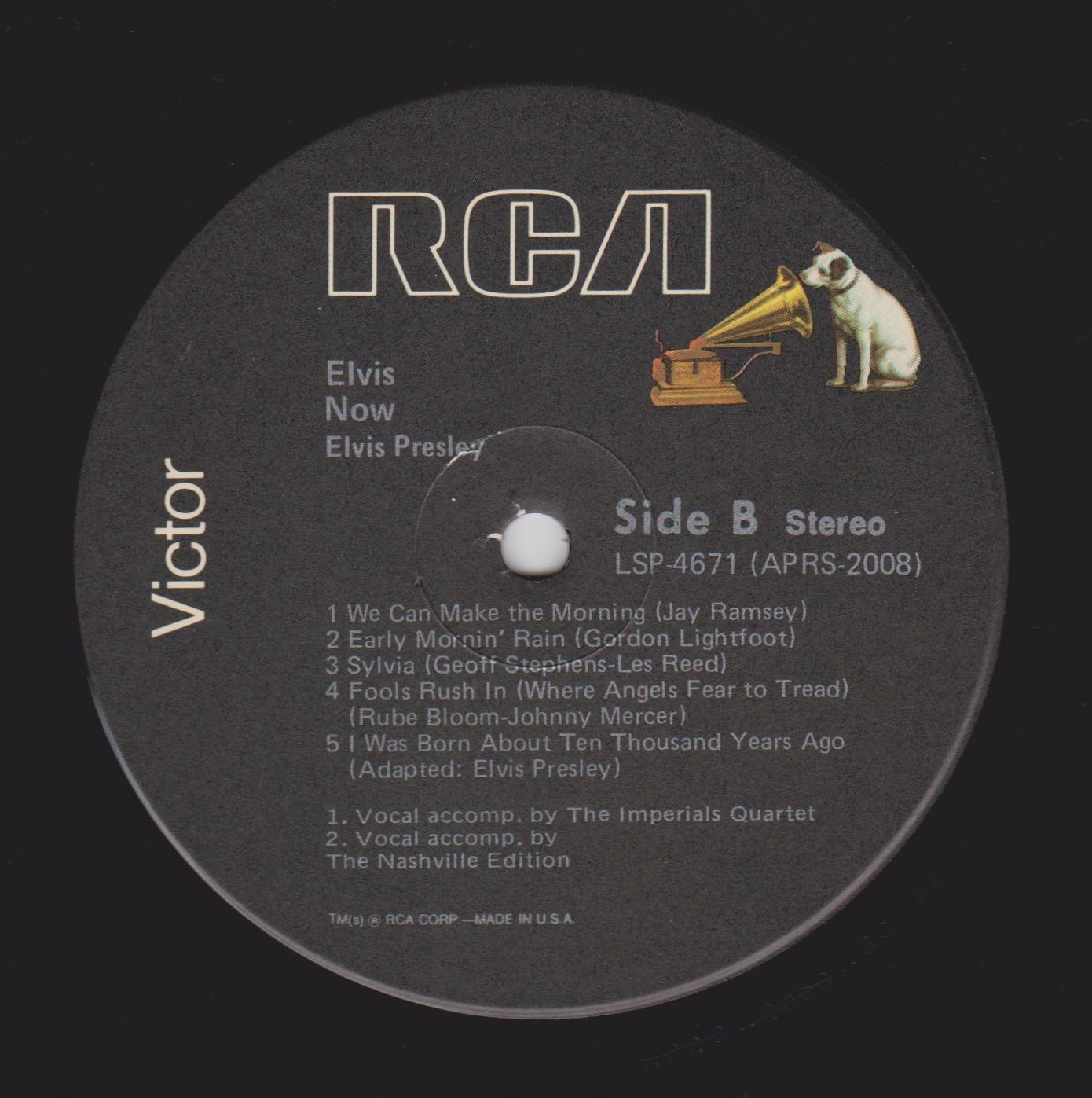 NOW (LP) (US) RCA LSP 4671 Released: February 1972 Side 1 Help Me Make It Through The Night ****** Miracle Of The Rosary ***** Hey Jude * Put Your Hand In The Hand ********* Until It's Time For You To Go ****** Side 2 We Can Make The Morning ******** Early Mornin' Rain **** Sylvia *** Fools Rush In (Where Angels Fear To Tread) ******* I Was Born About Ten Thousand Years Ago ** * Recorded: American Studios, Memphis, January