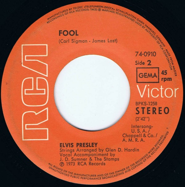 Recorded: RCA Studio B, Nashville, March 15, 1971 Catalogue Number : APL1 - 0283 Side 1 : Fool - Where Do I Go From Here - Love Me, Love The Life I