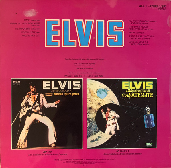 (LP) (US) RCA APL1 0283 Released: July 1973 Side 1 Fool Where Do I Go From Here ******* Love Me, Love The Life I Lead ***** It's Still Here **** It's Impossible ****** Side 2 For Lovin' Me * Padre ** I'll Take You Home Again Kathleen **** I Will Be True **** Don't Think Twice, It's All Right *** *