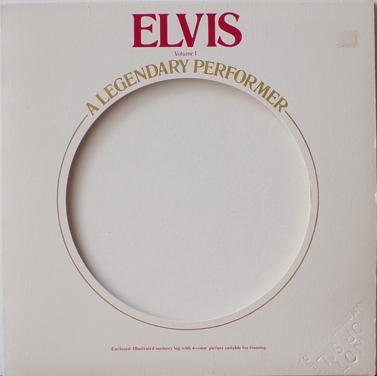 | Details : 1986 Release Front Cover : Elvis photo. Title on top. Rear Cover : Song titles. In brackets RCA statement about the Legendary Performer collections. Catalogue number & Printed in U.S.A. bottom centre. Label : Black. Side A : Volume 1 top under Elvis. Side B : Volume 1 top under Elvis. Pressing Plant : Indianapolis Matrix Number Side 1 : CPL1 - 0341 A - 11 A1 (Machine Stamped) B (Hand Etched) Matrix Number Side 2 : CPL1 - 0341 B - 9 A1 (Machine Stamped) KK (Hand Etched) *NOTE* No Die Cut. Also no booklet with this release. Rear cover "RE" bottom left. All text on vinyl labels gold. |