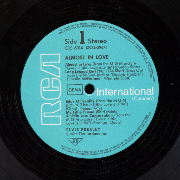 IN LOVE (LP) (US) RCA Camden CAS 2440 Released: March 1973 This was a re-release of the 1970 album of the same name with the only difference being the replacement of "Stay Away, Joe" with "Stay Away". |
