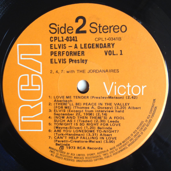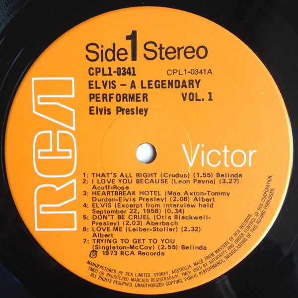 | Label: RCA – CPL1-0341 Series: A Legendary Performer Format: Vinyl, LP, Compilation, Stereo Country: Australia Released: 1973 Phonographic Copyright ℗ – RCA Records Original Australian release in die cut sleeve including 12 page booklet
