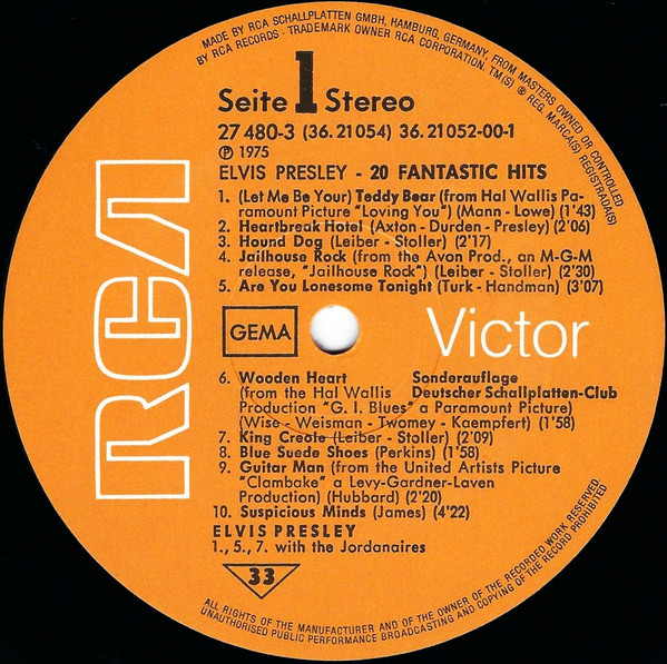 top left under Elvis. Catalogue number bottom right. |