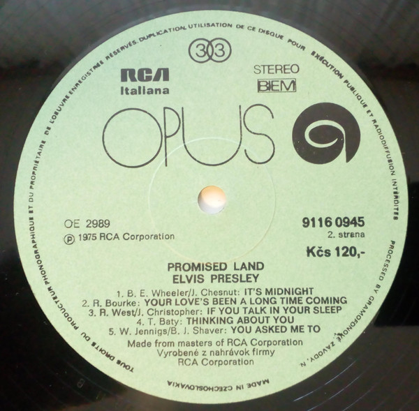 0945 Format: Vinyl, LP, Album, Reissue, Green labels Country: Czechoslovakia Released: 1980 Copyright © – RCA Corporation Made from masters of RCA Corporation Matrix / Runout (Label A): OE 2988 |
