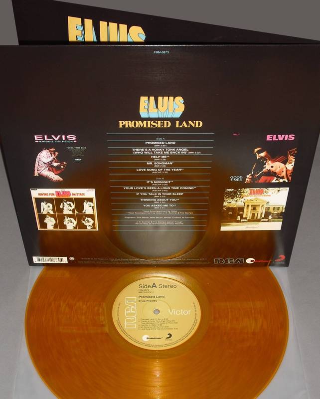 11, 1973 Brief History : Promised Land is a 1975 album by Elvis Presley on RCA Records. It was recorded in December 1973 at Stax Records studios in Memphis and released on Presley's 40th birthday. The material was the second pick from the December 1973 session as the songs considered strongest had been issued on Good Times. The title track, a cover of a 1965 hit by Chuck Berry, was issued as a single and hit number 14 on the Billboard Hot 100 and the UK top ten, the flip side "Its Midnight" reached 9 on the Country Charts. Another hit single from the album was "If You Talk in Your Sleep" reaching 17 on the Billboard Hot 100. In the US the album only reached number 47 on the Billboards Top LP's chart, but reached 1 in the Billboards Top Country Lp's chart. The album also reached 1 in the Country Cashbox albums chart. In the UK the album reached a 21 position. In 2011, the FTD (Follow That Dream) collectors label released an expanded, 48-track version of the album including outtakes. Front Cover : Photo of Elvis. Title top left. Catalogue