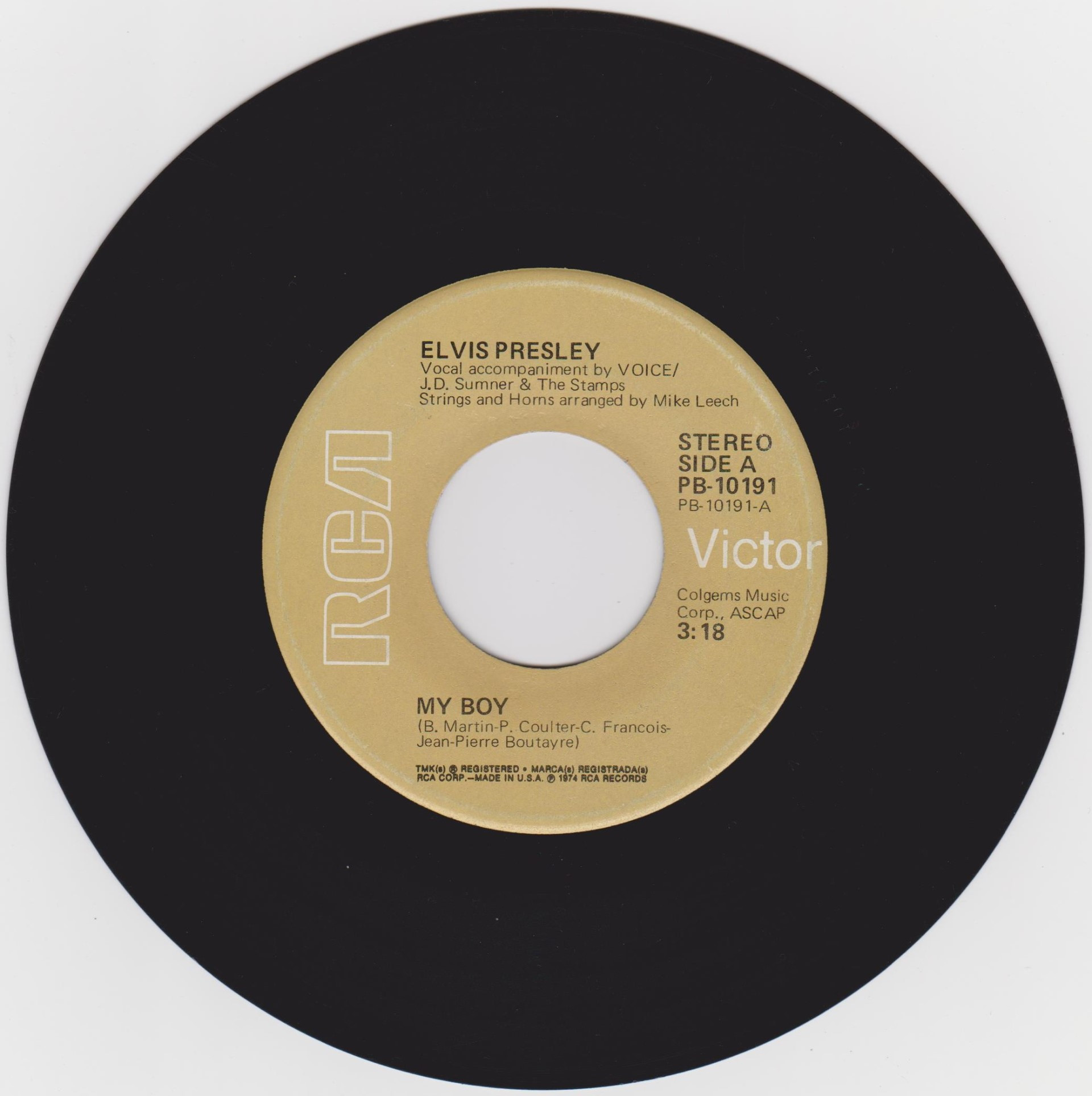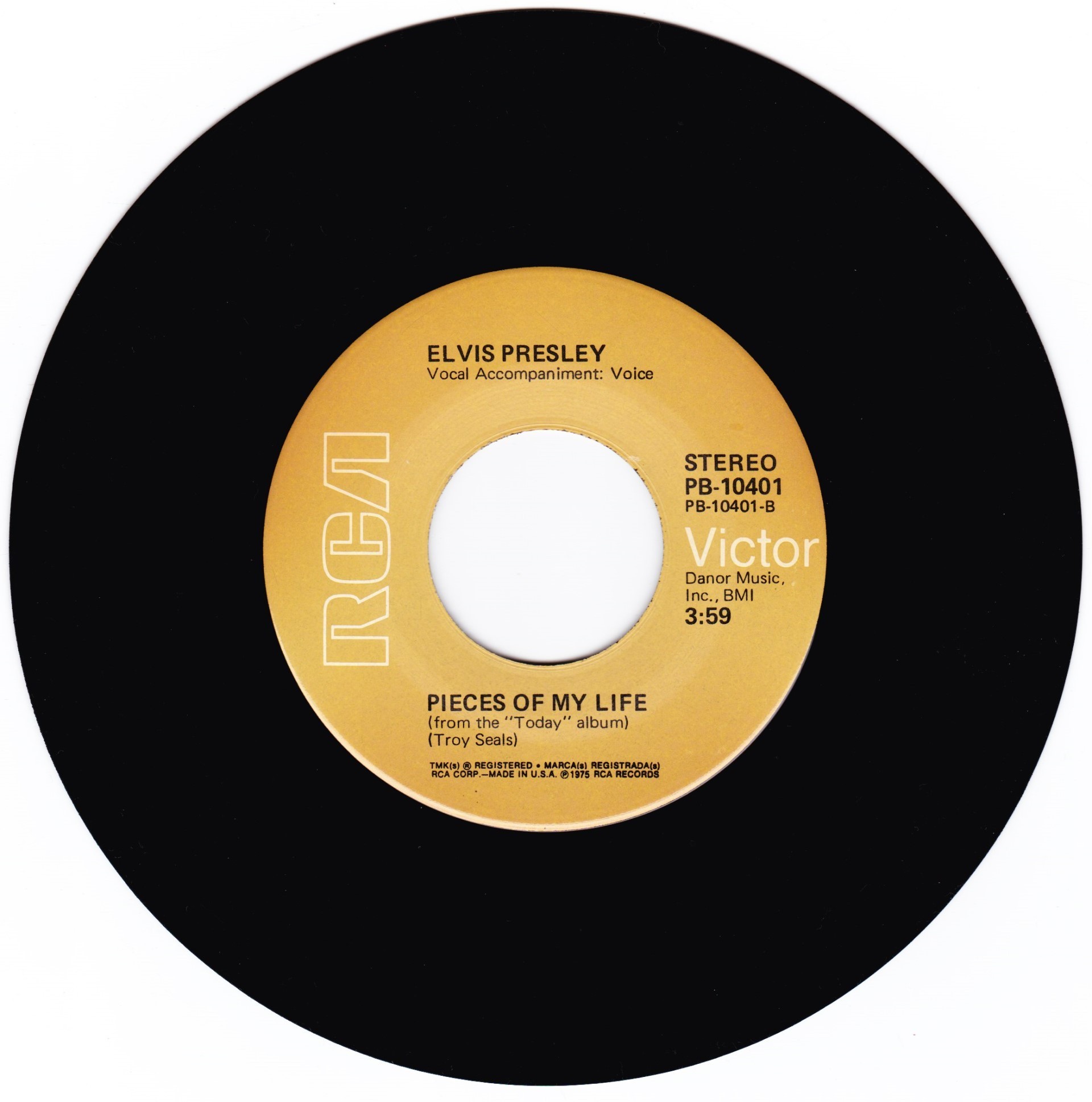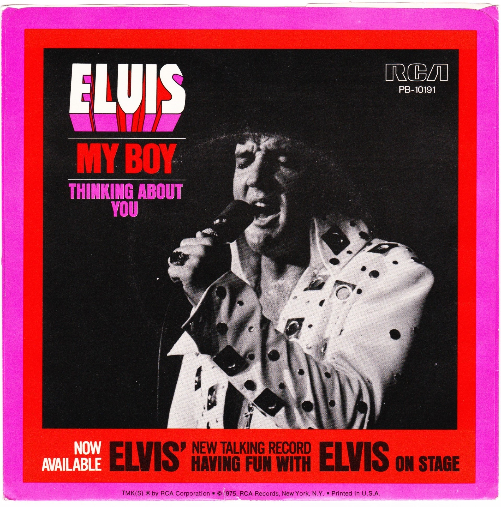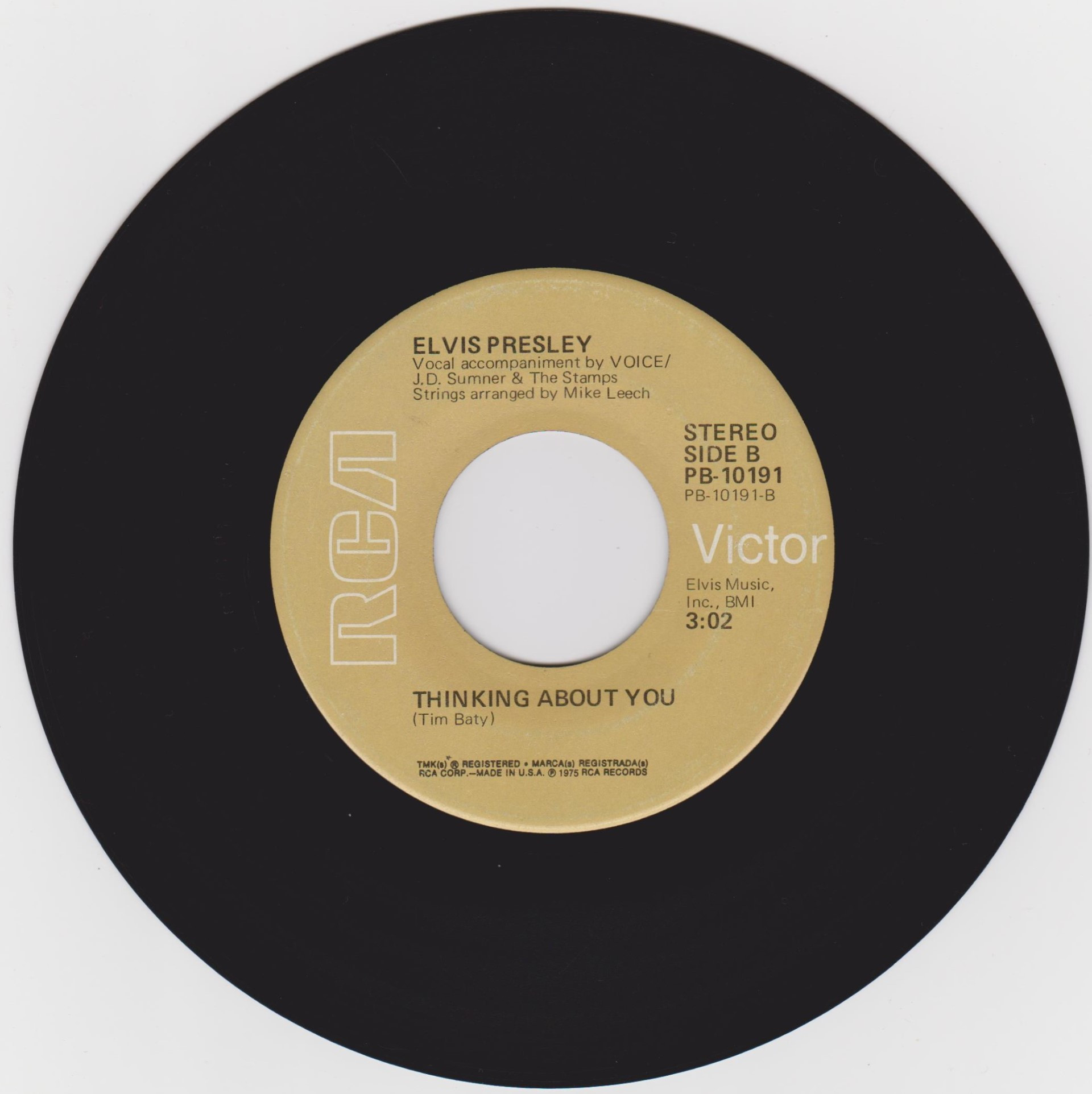 Elvis Presley Music, Inc. PROMOCION PROHIBIDA SU VENTA on white label Publishers ℗ 1975 - 8 RCA Records Matrix / Runout (Label side A): PB-10191-A |