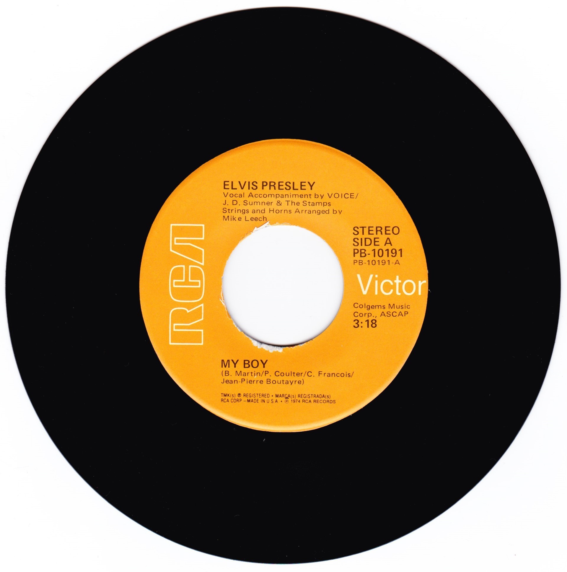 | Label: Collectables – COL80022, Collectables – DRE11955 Series: Back To Back Hit Series Format: Vinyl, 7", 45 RPM, Single, Reissue, Purple Marbled Vinyl Country: US Released: 1997 Manufactured By – BMG Special Products My Boy ℗ 1974 BMG Entertainment. ℗ BMG Special Products Purple marbled vinyl Matrix / Runout (Side A runout, stamped): GB 10489A 5 A 2 |